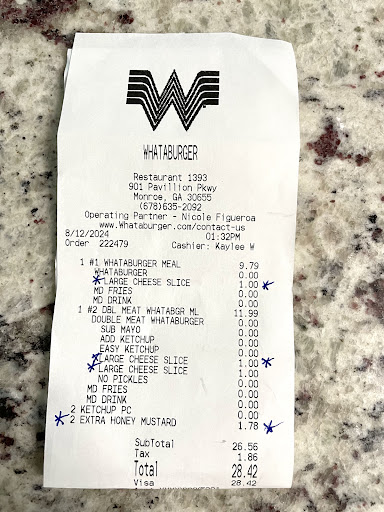 Read moreThe only reason I gave even a 1 ⭐️ is so I could leave a review. 3 total people in Drive Thru ordered my burger without Cheese & Onions. The women on the speaker repeated it to me. Pulled up, again just 2 other cars ahead of me. Had to wait forever. Drove away and to the next town ( as I’m working) opened my $10.48 burger 🍔 and it was loaded with cheese and Onions! Urgg, I called the store asked for the manager Nicole again had to wait forever for her to pick up. When I explained what happened she responded Oh I’m so sorry, just come back. I explained I’m working and have left Monroe and will not be back for 6 weeks. I suggested she take the receipt number and refund my money. She said she was not able to do that it had to be done in person bringing the incorrect sandwich back in with me. Well this was my First & Last Visit to Whataburger! Over prices Birgers and Bad Customer Service!!