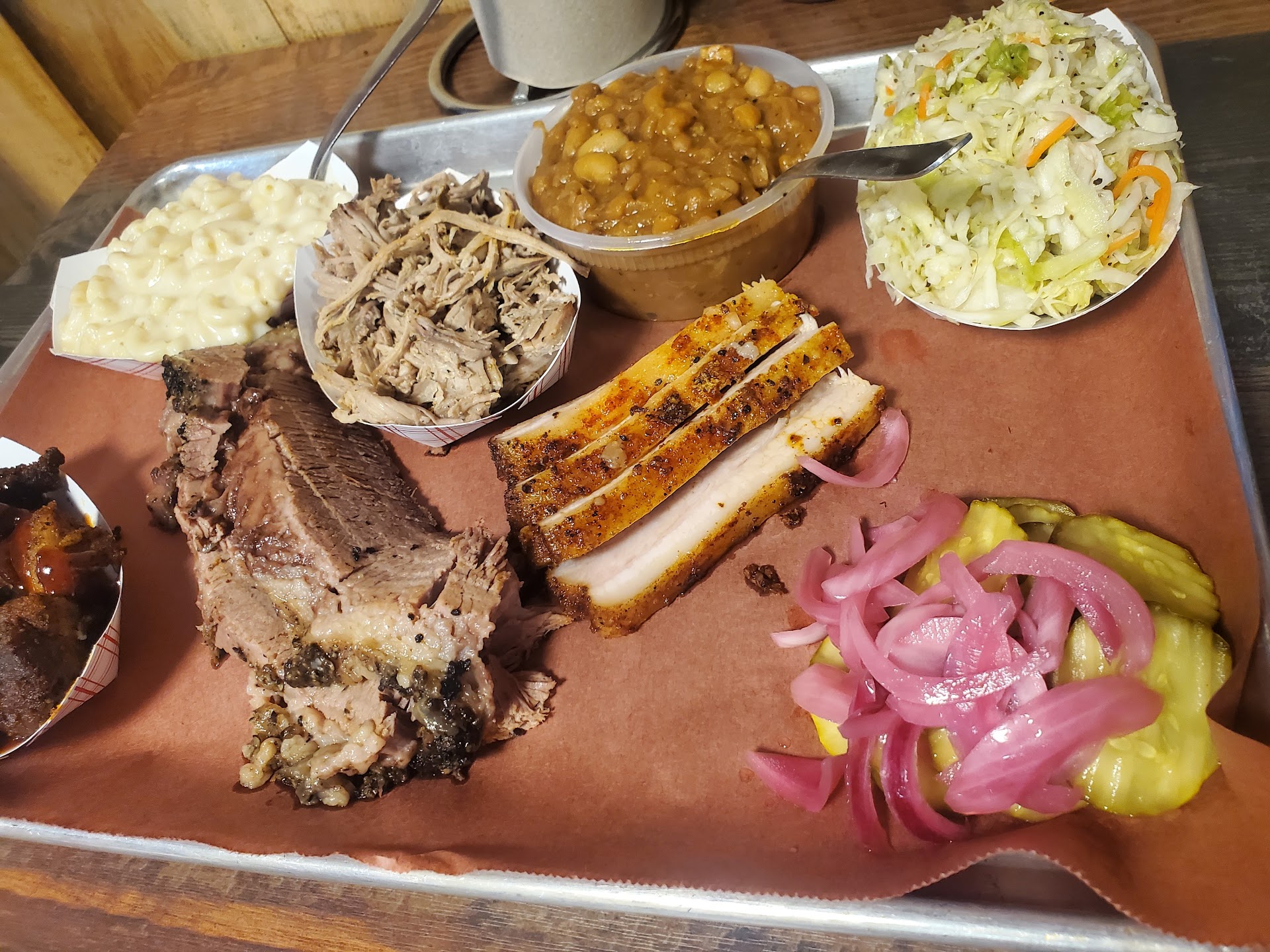 My only suggestions: add a wet slaw and BRUNSWICK STEW! I can't find anywhere that does Brunswick stew in the north. You add Brunswick stew as a side I'll be in heaven.