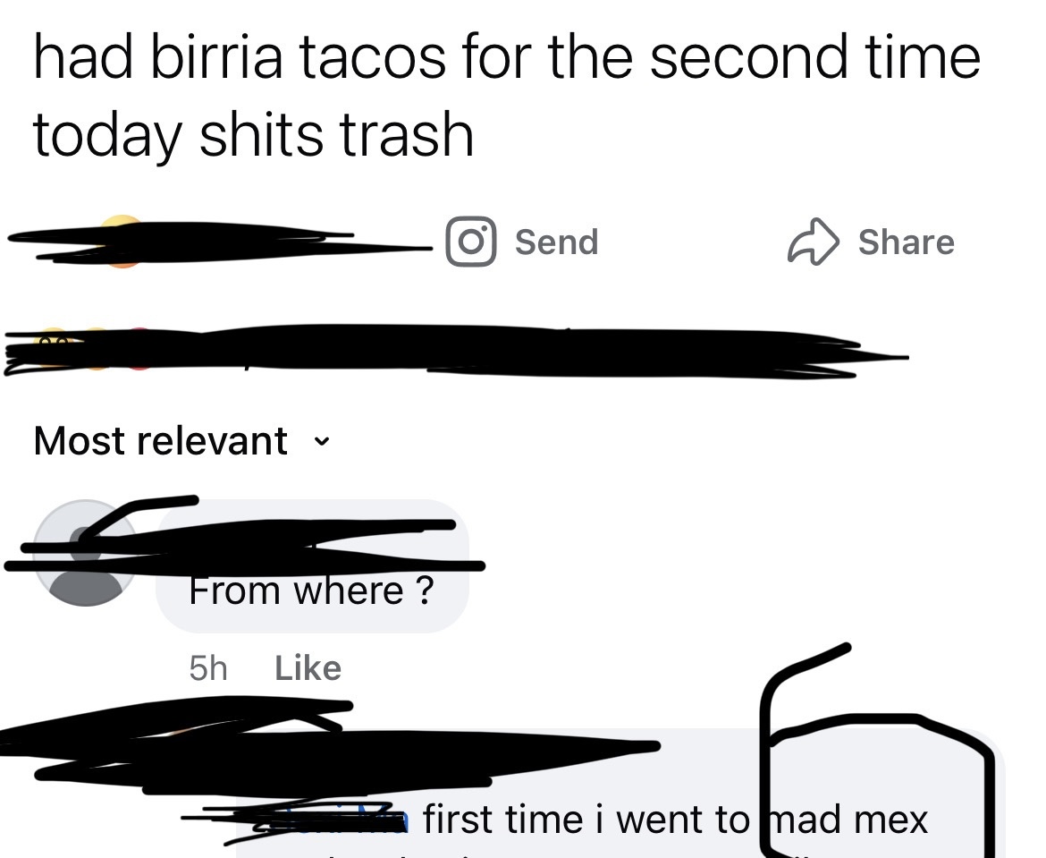 I don't tip on takeout anymore no matter where I'm calling and Mad Mex was the main impetus for this. About 50% of the time something is wrong or missing with my order but in 2025, my expectations are so low,...