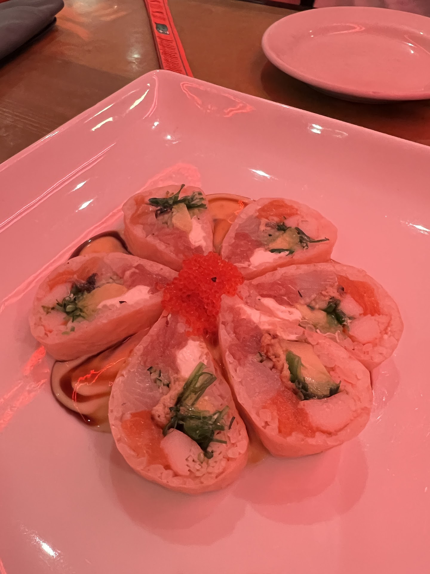 Read moreI need to add to this review. Inspired by a friend, my Tuesday dining companion and I went to our favorite sushi place. Now, two/three weeks ago we tried an all you can eat place that just opened up. A fairly high end one. There were 4 of us and all of us left unsatisfied. The quality there and presentation and heck, the whole dining experience was just off enough that we'll not go back. So, back to our usual place and boy, were they on point with the meal. Not only was the fish super fresh, everything was just right. Now, I suspect they went a little above and beyond tonight because I told them about the other place, but this place is consistently excellent. So, without further ado, I present our Dinner. On the large plate going clockwise, we start with tuna sashimi, salmon sashimi, sex on the beach, Monroeville roll, Pittsburgh roll, eel roll, spicy tuna roll, and in the center tamago sashimi. The upper left had some lovely orange pieces in a cute basket and everything was presented beautifully. The second plate is one of their signature dishes called a Pink Lady Roll. The special sauce is a mix of spicy mayo and eel sauce and something else we cannot figure out. It's spectacular.