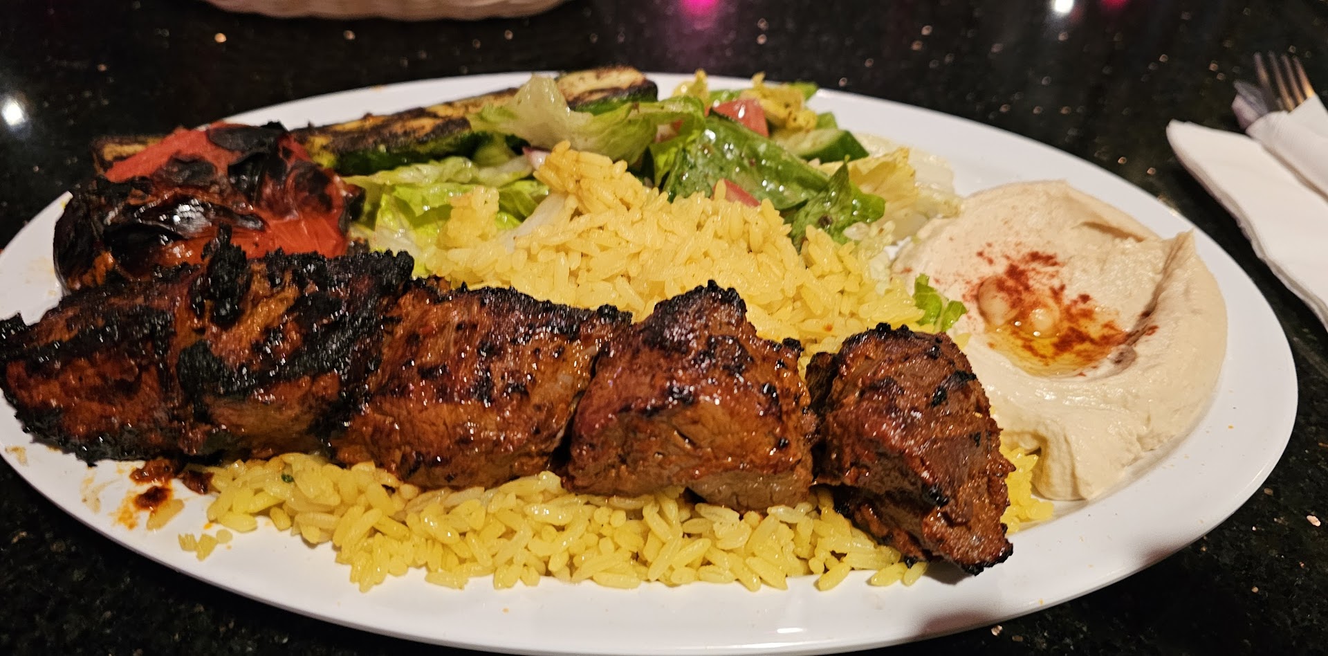 The food was genuinely flavorful and authentic, with each dish showcasing the richness of Middle Eastern spices and fresh ingredients. From the creamy hummus to the tender kebabs, every bite was delicious and well-prepared. The balance of spices was perfect, bringing out the traditional taste without overwhelming the palate.
