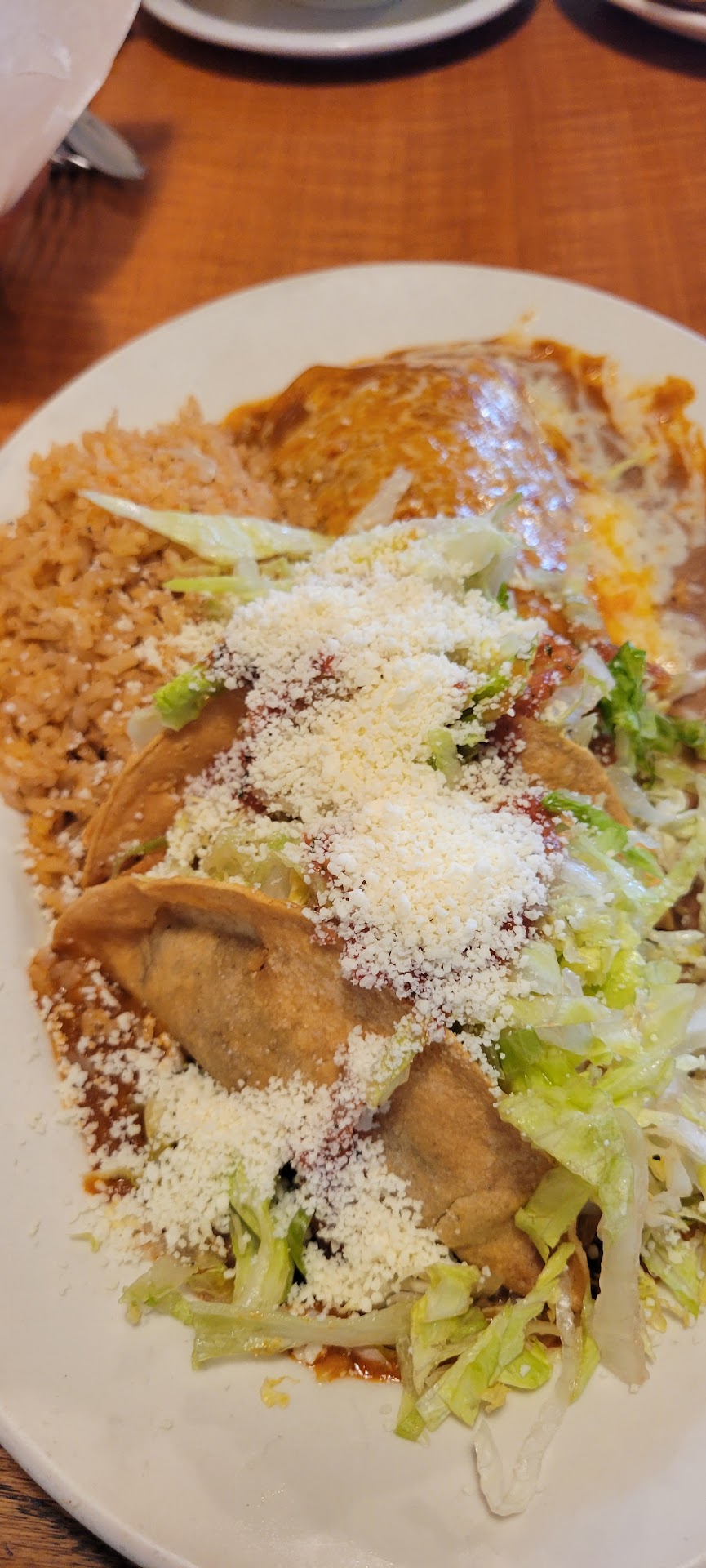 Read moreStopped by this restaurant on a whim after visiting Roger Dunn, wasnât quite sure what to expect. The space felt inviting, to my delight, we were welcomed with complimentary starter chips and salsa that were scrumptious! The chips were perfectly crisp, and we enjoyed both the spicy and mild salsasâthey were packed with flavor and set a great tone for our meal. We arrived around noon, and I was pleased to see a variety of everyday specials, including enticing lunch deals. I decided to try the two hard-shelled tacos paired with a shredded beef burrito, while my partner opted for the lunch special flautas. The presentation was appealing, and I could see that care was taken in the dish assembly. However, there was a significant downside: the food itself lacked seasoning. Despite the vibrant ingredients and potential for flavor, the dishes tasted rather bland, which was disappointing and unfortunately brought my rating down by a star. A dash of spice or seasoning would elevate these dishes to match the ambiance and overall quality of the service, which, I must say, was excellent! Our server was attentive and friendly, making our dining experience pleasant. Iâm definitely looking forward to returning and giving this place...