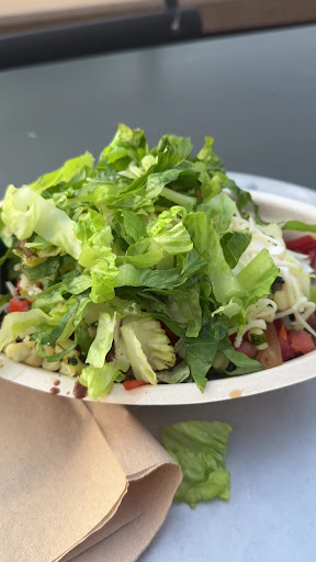 The chicken in the bowl that my husband ordered didn't look fully cooked. The counter was not decent looking. There was food all over the place. The register area did not look clean. The table in the eating area were all dirty. ALLLL of them. Not one table was clear of food crumbs. The trash can was overflowing with tossed out food. We had to throw our food in the recycling bin.