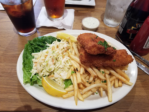 Deplorable. I am writing this review from the discomfort of home, after their burger gave me a nasty bout of food poisoning. My father and I were ignored at an uncrowded bar for minutes before and after we ordered a drink. Evidently the staff here find that scrolling on their phones like bored kids at work is acceptable behavior. We had to flag down another bartender to then order food, which in hindsight should’ve been our cue to leave, with our stomachs intact. My burger was very undercooked and my dad confided in me that the fish n chips were the worse he’s ever had. It was deep fried fish jerky at best and our fries were clearly the store bought and left in the back of the freezer too long crinkle cut garbage you’d be ashamed to share with a hungry dog. I’ll digress for the sake of adding length to this review. It reminded me of a school cafeteria that just so happened to...