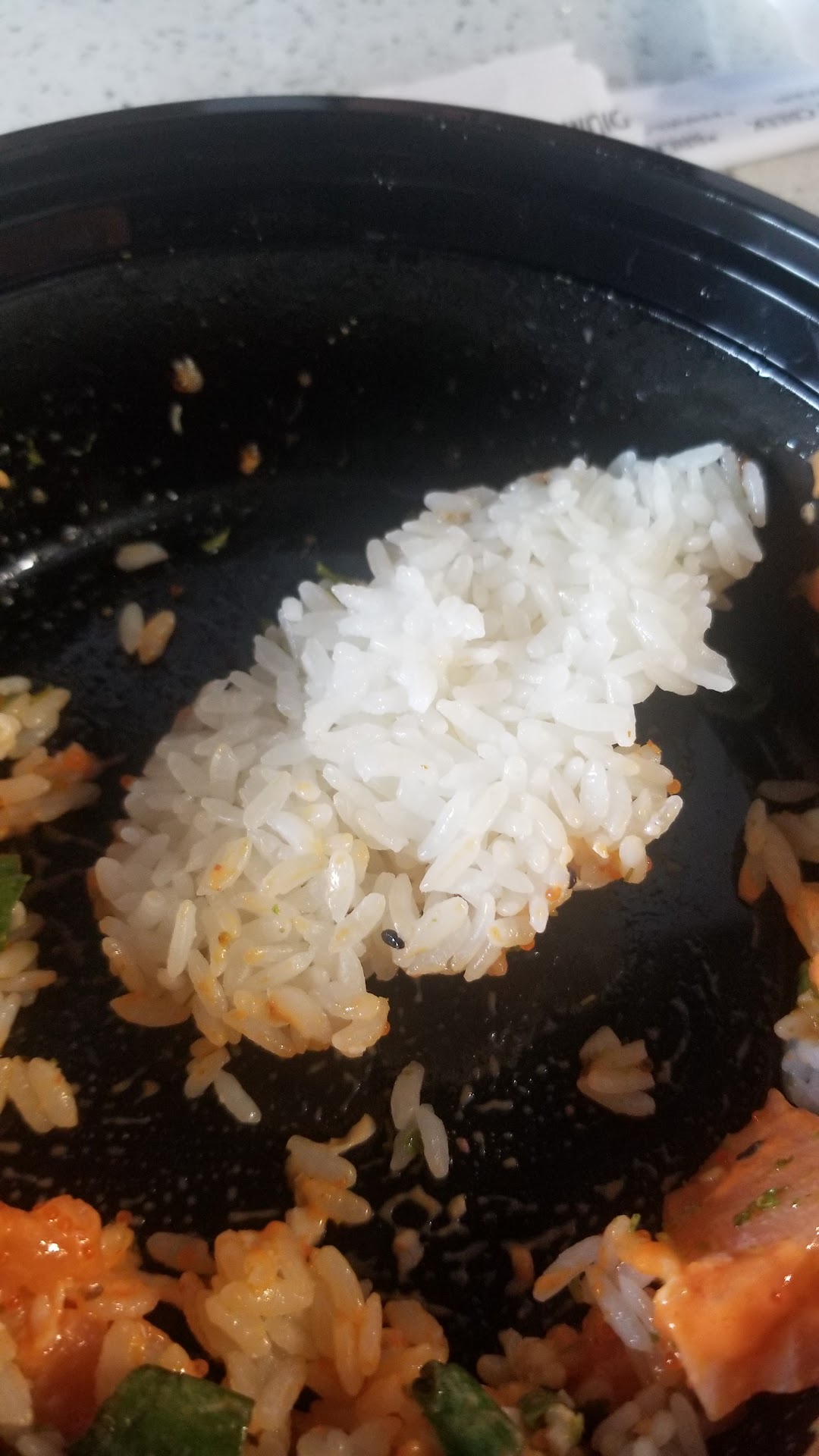 Read moreI eat a lot of poke. For some reason, nobody on the mainland can make rice correctly. They think it's an afterthought when rice is equally as important as the poke. The Rice here is hard and dry. I came here on a weekend, lunch. You'd think the rice would be fresh. It wasn't. It was sooo hard and dry. Like rice that's been sitting in a cooker for 4 hours. Make smaller batches. It'll come out better. The fish was ok. The sauces are quite bland. I think the rice completely ruined this experience for me. I left behind a big slab of crust in the pic. Look at it. ...