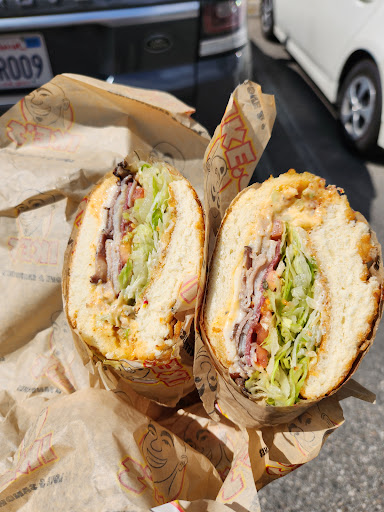I felt the same sense of domination and supremacy as no less than 60 depictions of Ike watched me as I entered. The caricature of Ike was even smiling at me the way Big Brother smiled at Winston! The totality of Ike's presence was expressed once again as I looked at the seemingly endless menu. I had to gaze into infinity to make my choice, the Madison Bumgarner. The employee who took my order was extremely friendly and helpful- I wonder if she too feared Ike's omniscience.