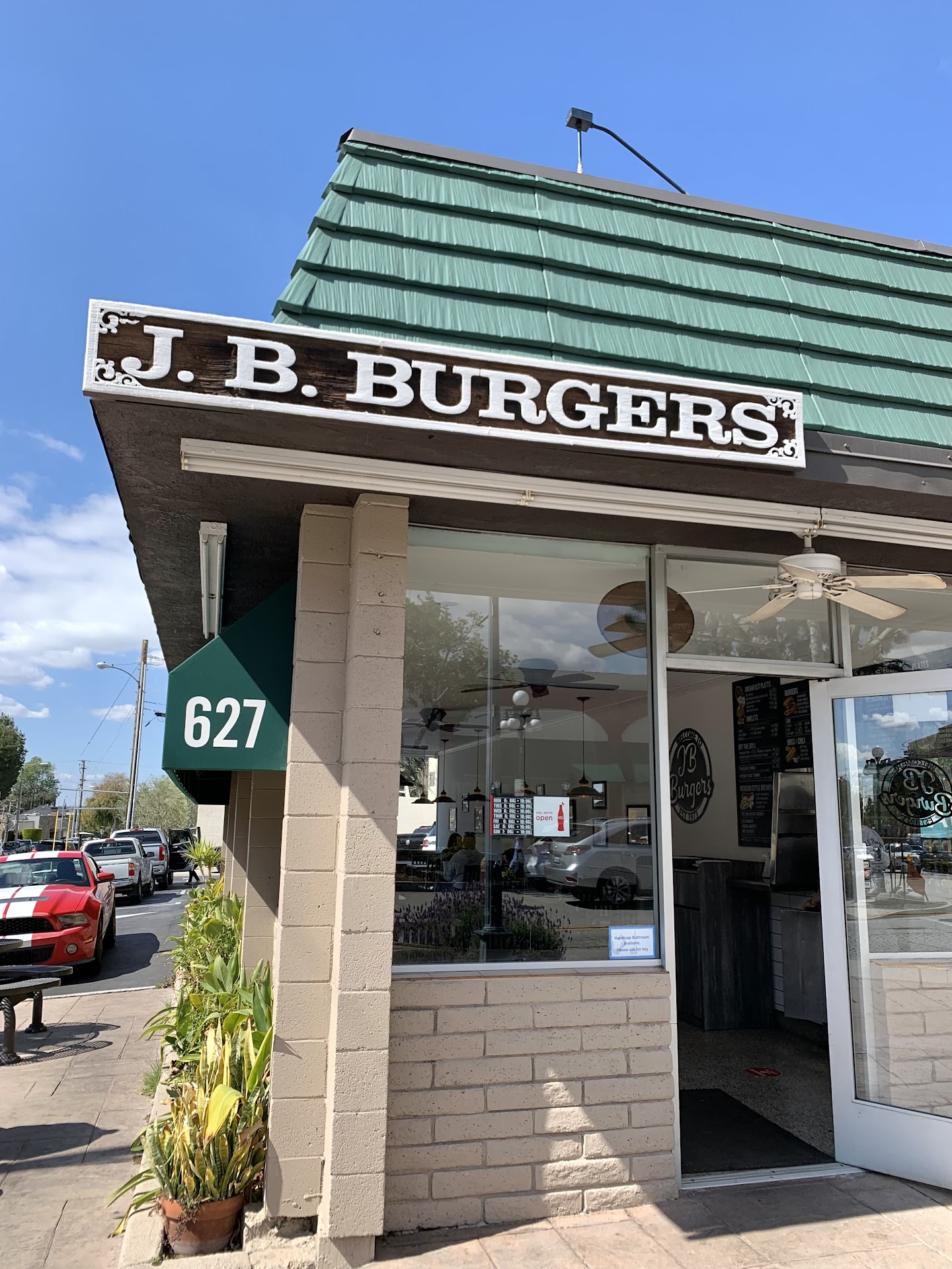 We love JB Burgers. Why? For one, the food is great. I get a steak sandwich all the time. No mayo, due to a diet constraint. Sometimes I'll get a bowl of chili ... or if I'm in the mood, I'll get a stack of french toast with my steak sandwich. Yes, that's a lot of food!