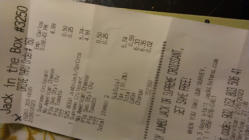 Ā Ā Ā Read moreI went in this morning for breakfast. I order ahead as I usually do. When I got to the window the manager working quickly opened it, said āpark at spot 1ā and then closed it immediately and went back to doing stuff on the order screen. I didnāt even get a chance to ask for condiments or anything so I waited a second to get her attention to make sure I could get some ketchup. She rolled her eyes at me and brushed me off towards the waiting spot. The sever lack of customer service skills is concerning for someone in a management role. I will not be returning to this location. Thereās 2 other Jack in The Box restaurants within a mile. I donāt like being made to feel like Iām less than someone when Iām just trying to...