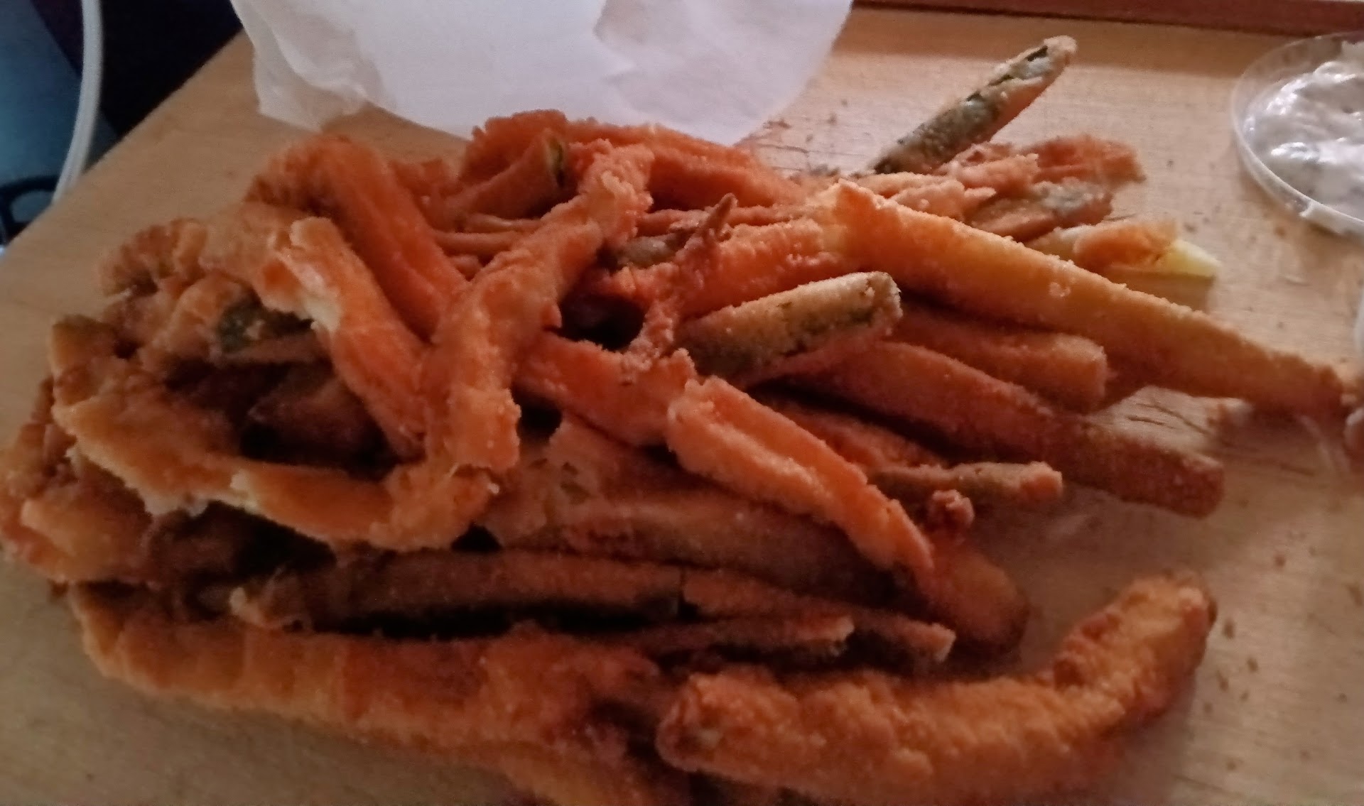 I knew by the look of the place that they would have great fried zucchini which I saw on the menu. Sure enough, I got a SMALL order, mind you, not a large and I was definitely surprised at how much there was. You can see by the photos. Not only was there a large amount of zucchini but it was very long strips, longest I've ever seen. Thought it would take at least 8-10 minutes to complete the order, but got it within 5 minutes .