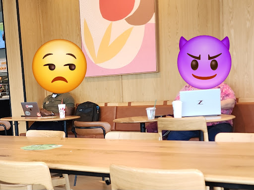 If Starbucks would power the center and window-side tables, this would literally be the best...