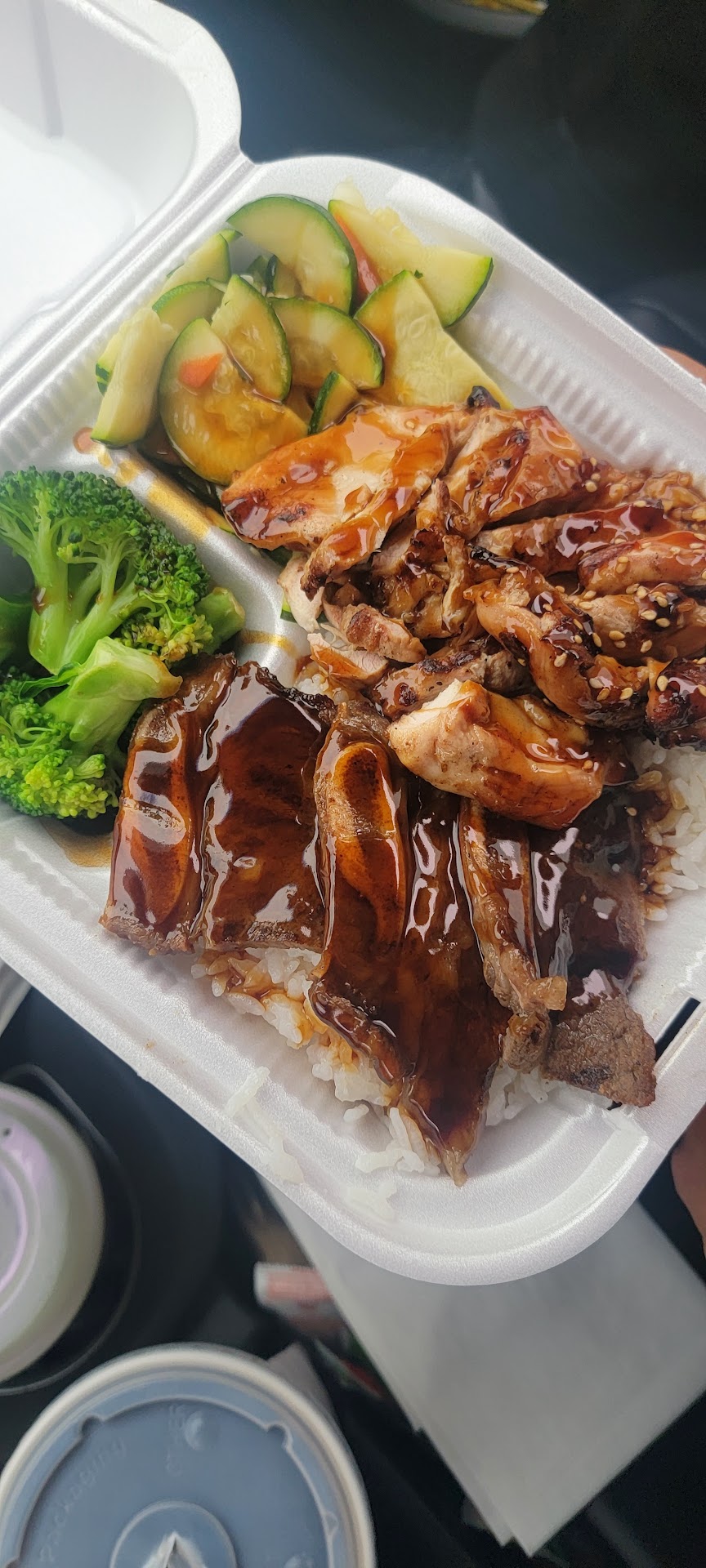 I ordered the rice bowl with teriyaki chicken and beef option. Ordered the small bowl and was more than satisfied. We added a spiced seasoning mix that is available and added a great kick and dimension to the vegetable sides and rice.