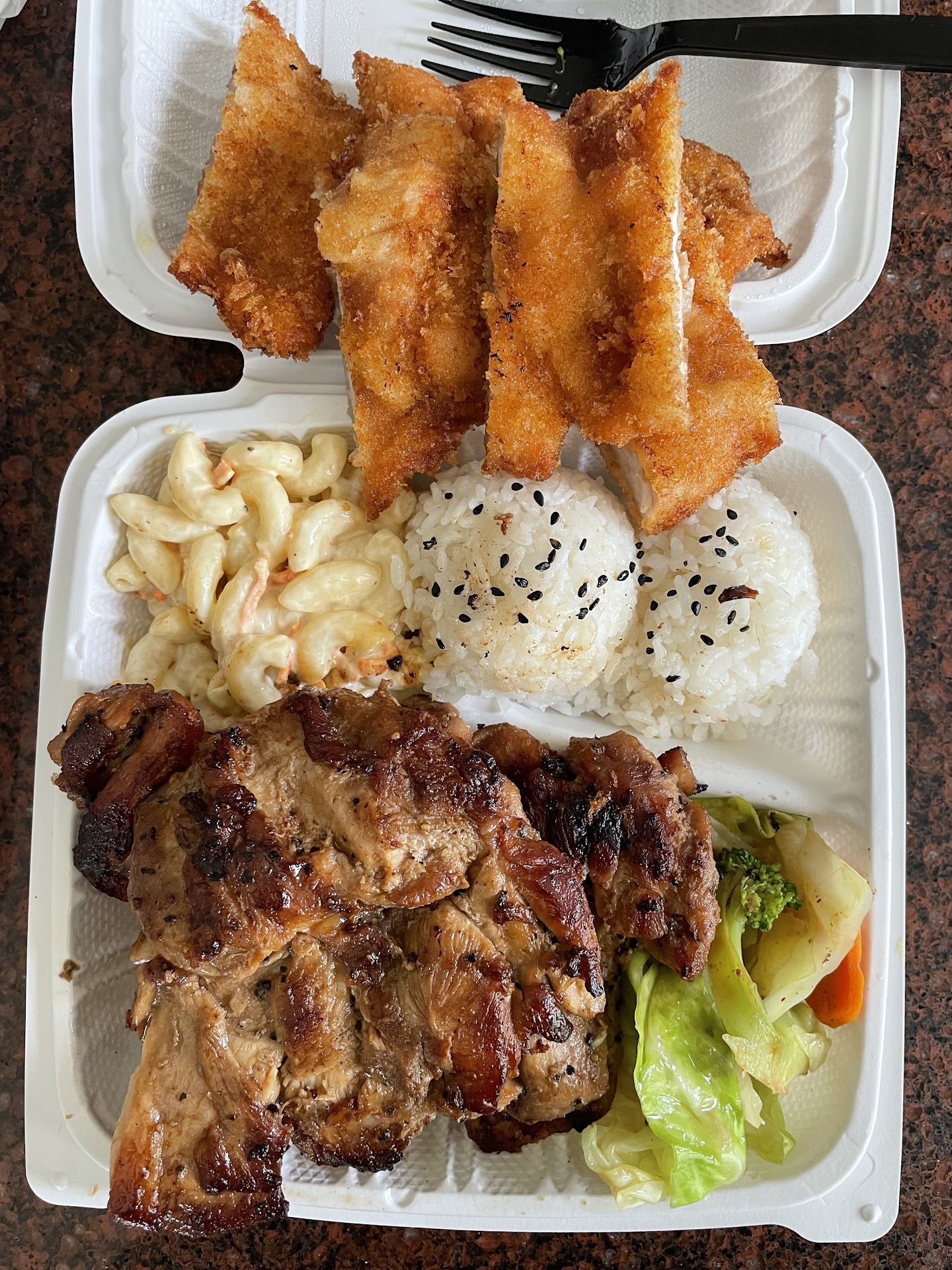 Chicken Katsu - MAKE SURE YOU GET THE SAUCE. They don't give it to you. You have to get it from the side. But it's good. Very crispy. Mac Salad - the macaroni salad is really good. Cabbage - Their steam cabbage is really good too.