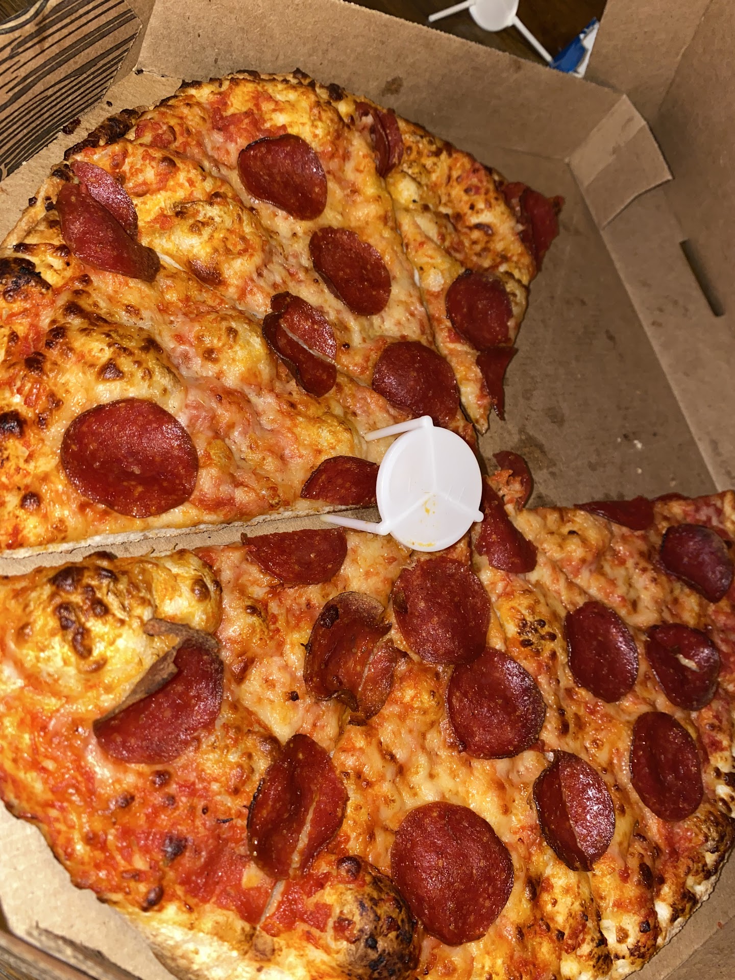 Not TL;DR: we just moved here from Corpus Christi and wanted to try a local pizza place as Corpus has an amazing local brewery and pizza restaurant (we will always miss you B&Js). Bucks was recommended to us by a good friend of ours, and they appeared to have good food + a lot of positive reviews, yay! We head into the store in 2 cars, as we have a friend staying with us, and proceeded to park in the handicap spot (for my wife) and the spot next to it (this is important for later). Once I have my daughter out of the car and we are inside, we go to the counter and order 2 dine-in specials, a 12" pepperoni, a 14" cheeseburger stromboli, desert, and 5 wings for my 18 month old daughter, as it was the only food that she wasn't allergic too (no big deal as she loves chicken). My wife and mother-in-law make their salads for the dine-in special and then get their pizzas after about 8 minutes, along with our friend's pepperoni pizza. After a couple of minutes go by, a large looking stromboli comes out, being carried by a different member of staff, and it immediately goes to the table of a large family that had ordered 3rd of 4th behind us. I continue to wait for my stromboli hoping that it might not have been done yet, so no big deal. Our dessert pizza makes it to the table at some point around here (missing the drizzle that is pictured on their menu AND on the pictures from others in the review), but we didn't notice it at that time... just pointing it out now as it is one of many cumulative issues with this place. The stromboli that the other family had ordered made it out to them... and they say that they already got their stromboli. The shoe that was obvious to me now drops... they did, indeed, give my food to that other family. We ask them about it and they apologize and say, "Oops, we made it wrong"... no... you gave my food to someone else, please don't lie to my face. They nod and agree and say, "Well, we can give you some extra sauces for free if you'd like." We decline this gracious offer and ask about my daughter's wings, "We only have one fryer, but we are working on them". Ok, cool. After 5 to 10 minutes go by, it is hard to tell, but we were about a third to halfway through the episode of Kitchen Nightmares that started about 15 minutes after we got there, there is no stromboli and no wings, but the family that got my stromboli now has their wings and all their pizza, and the family that ordered behind us has their wings and their pizza. I ask again, as calmly as possible, and they give us the excuse about one fryer, again... ok, great, but why would you prioritize food from other guests who came in after someone else? Internet / phone orders were getting their wings, but my 18 month old daughter is not good enough to get hers? At this point, I am fed up. I ask them to make my stromboli to go and I leave in the car that was parked in the handicap spot without my food. I didn't really want pizza for dinner, but had gone along with it, so this is what I get. After I left and our food was done, they all loaded up in the car next to the handicap spot and were preparing to leave when a car came blazing into the parking lot and parked in the handicap spot, barely missing the car they were in. My wife noticed that this was one of their delivery drivers (as they had gotten out carrying a delivery bag) and, unlike my wife, their employee isn't handicapped. No manager on duty, either... but they did offer us free dipping sauce twice. My stromboli was also undercooked, crust was doughie, and beef / bacon barely done... might...