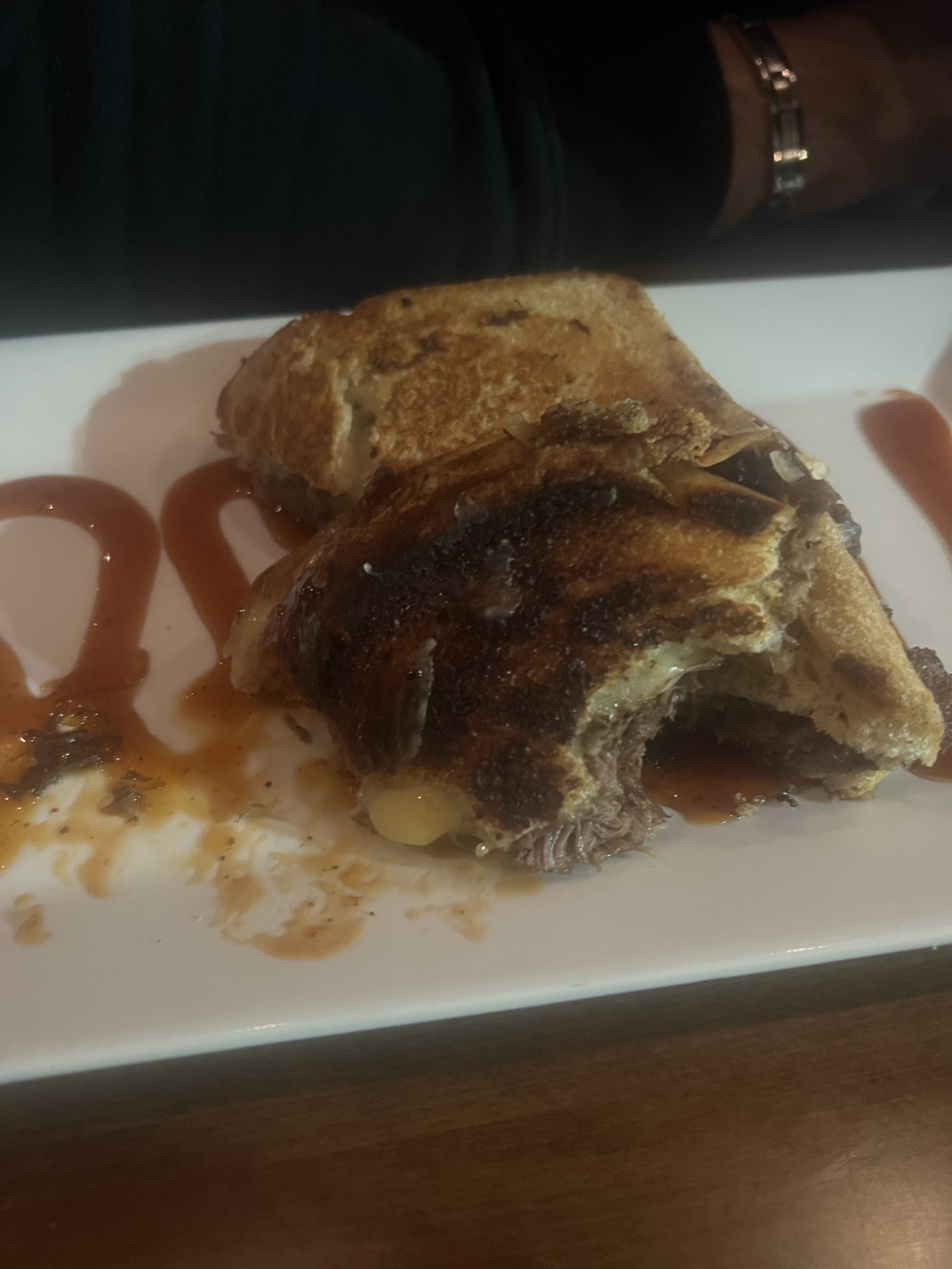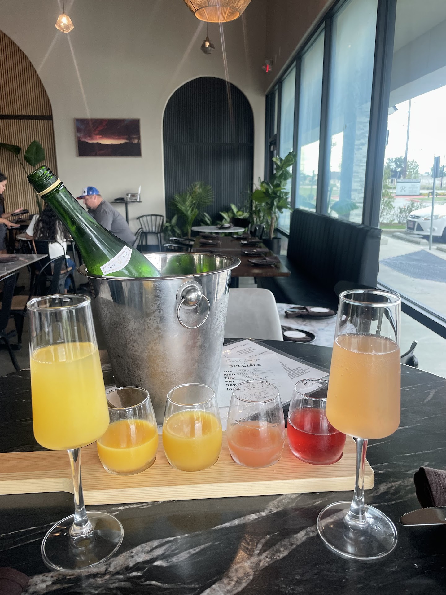 Our server was polite, but the lack of awareness and small oversights—like no steak knife for a steak dish—added up. One thoughtful moment: she brought a tomato aioli when they were out of honey mustard. One other highlight, we asked for a syrup or juice to go with our non-alcoholic sparkling wine and she brought three options.