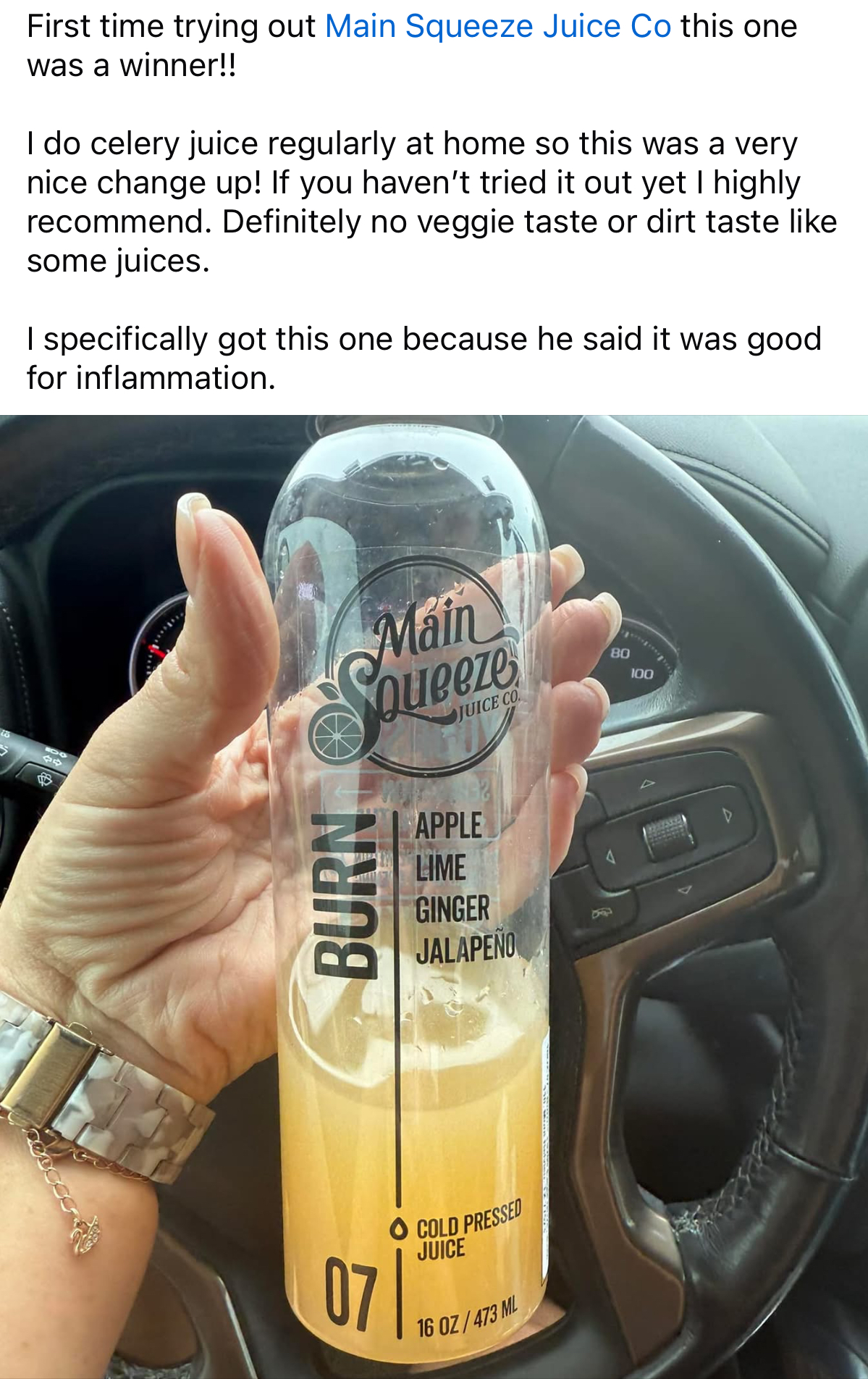 Read moreThis was my first time popping into a Main Squeeze, and Piper was really helpful. Today is actually my mom’s birthday and unfortunately she wasn’t feeling well after lunch so I came looking for something high in electrolytes and Piper recommended the Hydrate juice which contains watermelon, pineapple, lemon, and coconut water. Not only did my mom enjoy the juice, but I had her drink about half of the bottle and she started to feel better. We ended up checking out the new Burlington nearby and we found these super cute matching purses. We’re so excited about them. Lol. I’m so glad I decided to try Main Squeeze, the juice made my mom feel better and helped her bounce back and enjoy...