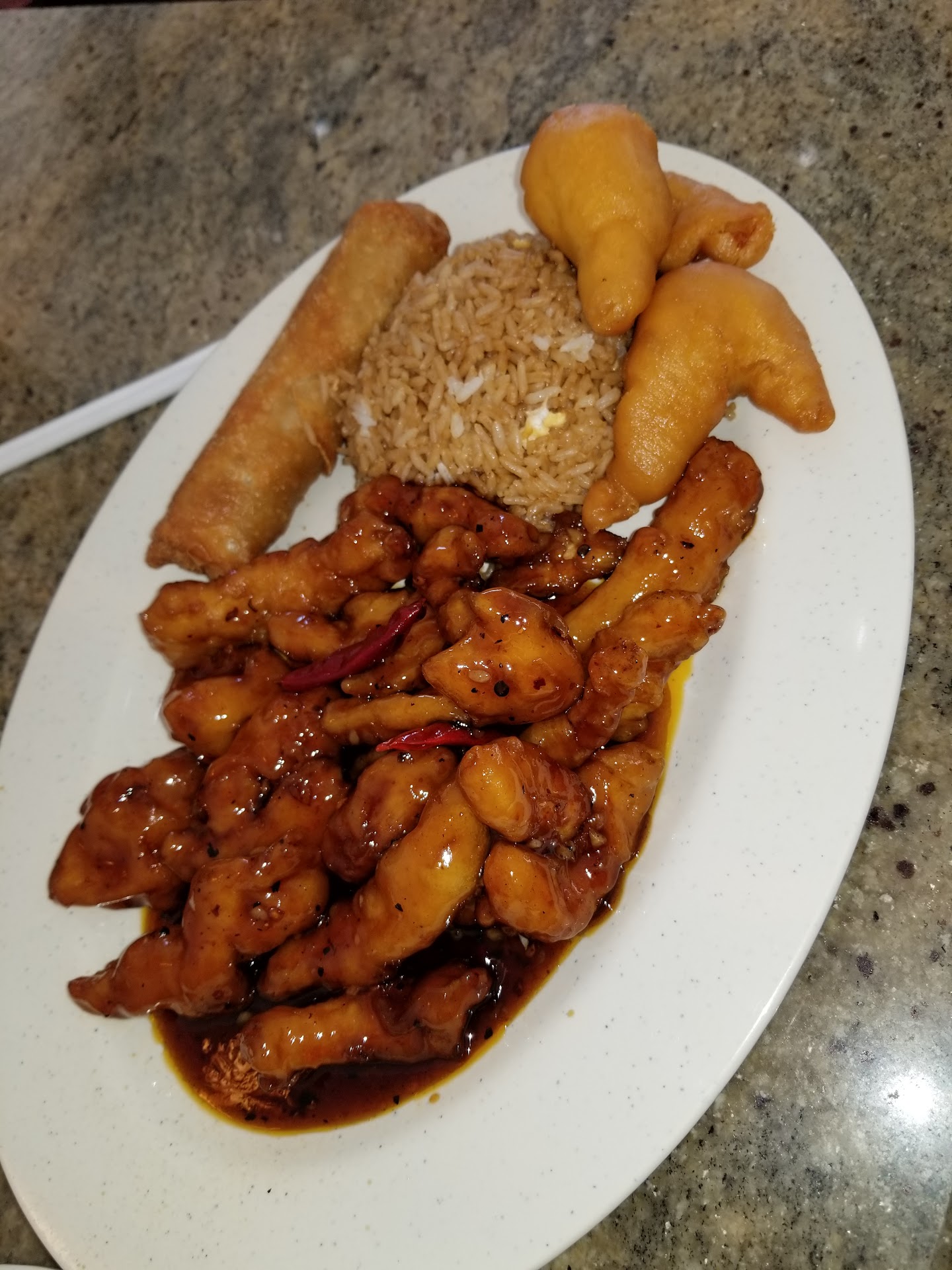 Sorry about the above, not removing anything, but I was "hangry". So much so that I decided to eat the whatever chicken type food this is. I didn't know you guys served this sub-par, cheap buffet-like stringy chicken with bland fried rice. The cream cheese fried wontons are about as good as any others out there, but come on, it's hunks of cream cheese in wonton wrappers that are fried....not good, not bad....not what I ordered today nor...