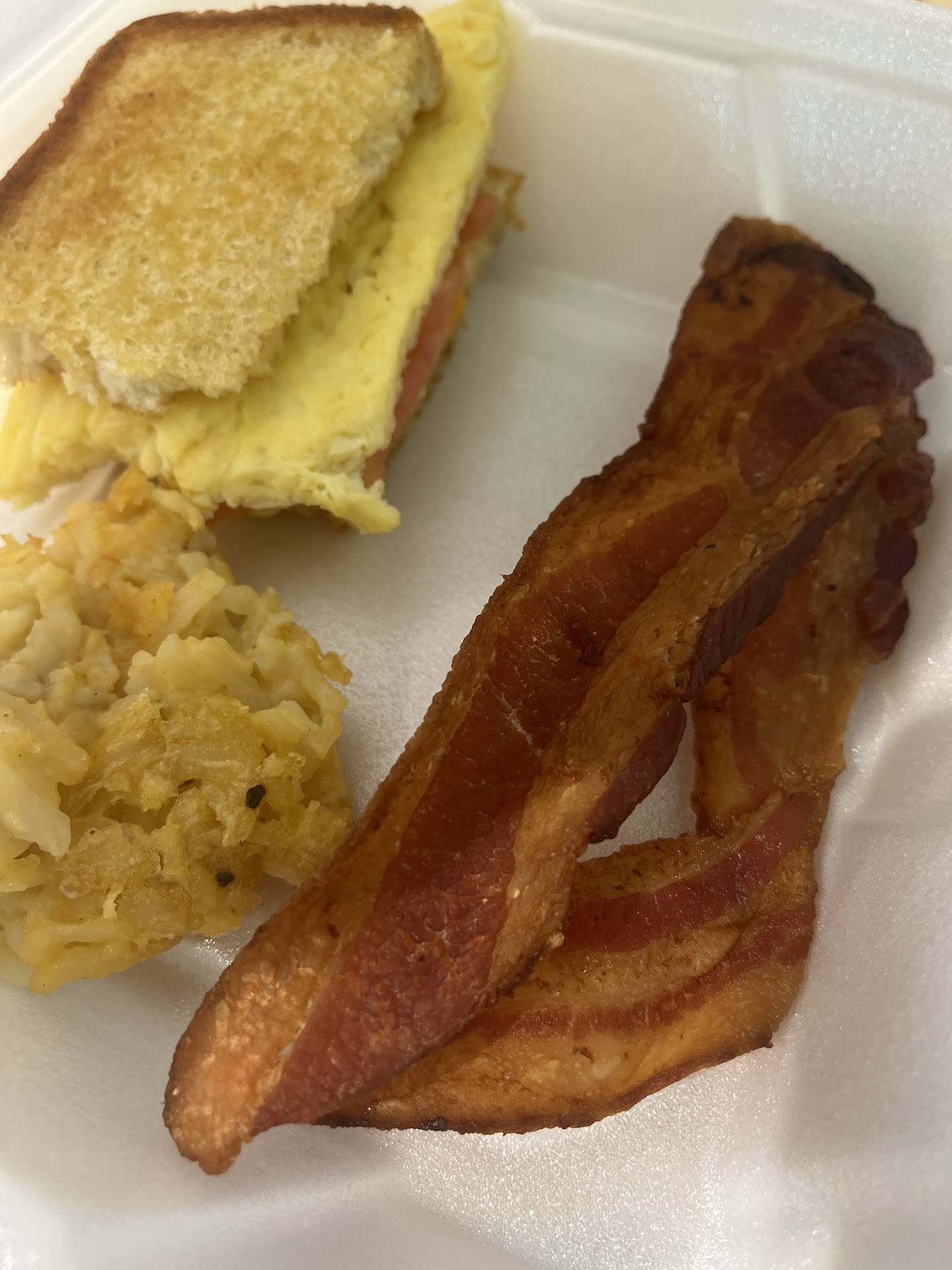 Came on a Sunday morning, got seated pretty quickly even though they looked very busy. The Host staff was a bit busy but friendly enough i guess and the young man holding open the door was very kind. It was a little noisier then most places due to the design of the building but over all I like the atmosphere. The menu is not appealing and it's a bit distracting to me anyway. I oreded the Toasted Yolk with hashbwon casserole and turkey sausage. I was very disappointed in the turkey sausage(⭐️☆☆☆☆) I don't eat pork so I was excited that they had it but I would not order it again I couldn't even finish it. The hashbrown casserole (I don't usually like anyway) but it was fairly good , a bit too much peper but also just not my thing. (⭐️⭐️☆☆☆) I see how someone might like it. Sweet tea was awful, not sweet and way too strong. DR PEPPER was very good. I would have drank more but it was hard to get a refill. NOW the main dish was very good (i had over med egg) and I would definitely want to come back just for that. My son also had it (scrambled egg) but he wanted mine more so I ordered another egg just for his. It took WAY too long to get it. Unfortunately he took his last bite and there was LONG hair all tangled in the egg. It was cooked into the egg. The manager did not handle it well. She was rude and honest very unprofessional. And honestly right when we sat down, I didn't know she was a manager i just saw her walking by but I made a comment about how unhappy she looked to be there. When I told her there was a hair, I said, " I just want to bring it to your attention, we are already finished anyway but there was a hair COOKED into my son's egg. I'm not looking to get anything out of it except to let you know so it can be fixed." She said "ah well everybody wears hairnets so I don't know" I put it closer to her face because there is no way I could have ever put that hair in that egg it was clear as day that it was cooked into it. I was holding the hair and the egg was dangling from it. She was slightly argumentative about it. I hope someone talks to her about how she should interact with customers. Our server was good but seemed over worked. She was definitely too busy to tend to us much. I would have given service 3 or 4 stars had it not been for the managers interaction. Managers are still part of the service.