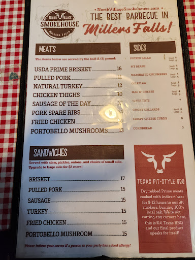 Ā Ā Ā Read moreI don't often write reviews but my experience at North Village Smokehouse was terrible. I ordered brisket/mashed potatoes, my partner ordered the ribs/pickled cucumbers/cheese curds, and our friends ordered the Kielbasa sandwhich and pulled pork/Mac and Cheese/cornbread. All of the meat was served cold. The brisket had absolutely no flavor and my friend stated the pulled pork was similarly bland and declined to finish the Mac and Cheese or cornbread. On top of the issues with the food, the service was very poor. The server disappeared for extended periods of time despite the restaurant being fairly empty and took an exceptionally long time to return with our cards once we paid. A different server brought our food out and spilled the cheese curds (totally fine, accidents happen). The server then asked if we wanted the ones that spilled onto the tray and proceeded to scoop them up barehanded and toss them into the paper basket. As a server, I know one of the most important things is to not touch food barehanded. Overall, we were highly disappointed and we had a much better...