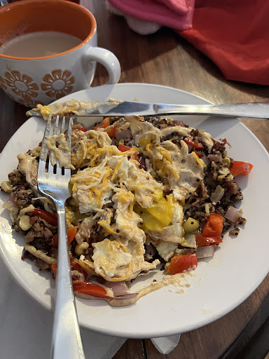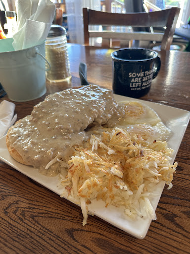 Read moreDon't eat here, it's overpriced and mostly canned food. I truly believe that its an attempt to scam tourists out of their money. My kid ordered the overpriced biscuits and gravy, the gravy came from a can and tasted like bacon grease slop. Most the food was gross, cold or underwhelming. It took over an hour to get our food, and they weren't that busy. Even getting our drinks took forever and the server didn't seem to come around that much. When we got our food someone at my table asked to order an additional drink, they didn't get it until over halfway thru finishing the meal, the server even admitted she kept forgetting the drink. Someone also asked if it would be a wait if she ordered an additional pancake and the server said it wouldn't be worth it. I almost thought maybe we were being grumpy, not happy about the service and speed but then I heard a group of guys at the next table complaining about the length of time it took to get their drinks.. When their food finally came one guy exclaimed, "I paid X dollars for this??" Right before leaving my wife and daughter used the bathroom, in the walk they walked past their open storage room, so many canned foods. Also the signs reading "$10 food/$5 Drinks" doesn't seem to be legit. Few other prices in case your wondering: $18 for any omelet (even ham and cheese) $21 for country fried steak on a biscuit $23 for steak and eggs (Steak was fatty and gross) $17 for Biscuits and (canned) gravy $5 for side of 2 eggs $6 for side of 1...