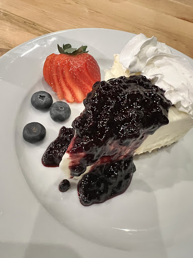 The cheesecake was light and fluffy. Very likely a no-bake cheesecake if that's your thing. I liked it, especially after a hefty meal. But my husband on the other hand loves a dense cheesecake so this was not his jam. The huckleberry topping was a nice touch.