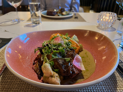 Read moreWe were in Whitefish for Thanksgiving and Herb and Omni looked like a great choice. The atmosphere is fantastic. Great design and decor. We were early so we found a couch against the wall in the bar area. The bartender was great. Expensive cocktails but perfectly prepared. We then were greeted by a grey haired man with a beard who offered to take a pic of us in front of the tree upstairs. Maybe an owner or a GM but very nice gesture. We then made our way to the table. This is where things kinda went downhill. I don’t know if the waiter was new or just not a good server. Took drink orders from only one of us. Disappeared for long periods of time. One thing I noticed but didn’t really pay attention to until the meal came was that the omnivore side of the menu. None of the protein cuts had ounces on the description. I should have known then. The apps were awesome. Roasted beets with ricotta and a caviar potato chip. For the mains, my wife got the Denver cut steak and I got the “iberico” pork chop. Both portions were extremely small but priced as if they were 12-14 oz cuts. Hence why I mentioned no weight given on the menu description. Also I put “iberico” in quotes bc I am pretty sure it was just a regular pork chop. I’ve had iberico a few times and it melts in your mouth. This was super dry and tough. Same with my wife’s “wagyu” steak. Tough and dry. Meanwhile I don’t know what happened but our mains took forever. Many people who sat after us were having dessert already and we were still waiting on our mains. I asked the waiter and he said they were being plated right now. Well they lukewarm and the taste was described before. I told the waiter that they weren’t even hot and not very good when he asked how everything was. One of the managers came over, I guess he went and told her which is great. She was great and super friendly. Apologized profusely and offered brand new mains. We were over it at this point. The waiter brought the bill and the mains were taken off. Not my goal at all but it was the right thing to do. The weird thing was the water made several screw ups during the evening, plus the mains having to be taken off. Of course the size, taste and quality of the meat was not his fault but he didn’t apologize once. Very odd to both of us since we both have long hospitality backgrounds. “I’m sorry” goes a long way but do you know what goes even further to me than saying you’re sorry? Not saying you’re sorry at all. That is a pet peeve of mine. Whether it be in business or personal interactions. No one seems to say they are sorry anymore. I don’t know if he was “off” that night or that’s just him but it really left a bad taste in my mouth. You would assume someone would just do that automatically when dinner goes that wrong and you work on tips. When I would screw up when I worked I hospitality, I probably almost overdid saying I’m sorry. I don’t know. The place was great otherwise. Could easily be a five star spot and then some but our mains were not what we expected and not very good and the waiter seemed to not be present the entire time. We will definitely be back though because we enjoyed everything...