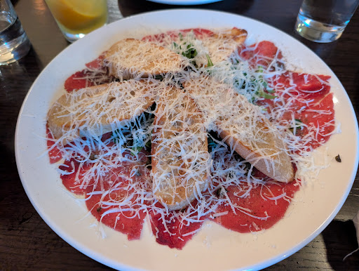 The food is decent. The staff looked miserable. And the woman at the front, Jen, is atrocious. Rude, Cold and everything makes her bothersome. The evening I took my mom it was the day after her birthday. The entire trip in Big Sky was a celebration. It was also -30° for two days. We arrived at the restaurant, a little extra early due to the nature of the roads and we wanted to take our time. It was so cold, and so beautiful, but a little too cold to stand outside. Jen strongly suggested that we leave the restaurant to stand outside and I quote, “look at the windows of the shops”. Jen just wanted us to leave the restaurant because it’s true, the opening where the hostess stand is not very large. But we didn’t budge because it was cold and uncomfortable. It was also uncomfortable standing there with Jen, but she walked away eventually. Our waiter, John was nice. He was definitely agitated at the beginning of our dinner, but he did relax once my mom and I were talking to him a little bit. He made good cocktails. The pizza was OK. They forgot to put the red sauce on, how that even happened I’m not quite sure they got confused because I wanted both olive oil and red sauce and they just put olive oil which dried out the cheese veggies and the crust. We were so hungry that when the restaurant offered to remake it, I genuinely didn’t want to wait. I wouldn’t return here just based off of my personal experience. The food isn’t that good. What upset me more was the state of the people who worked there. Go to Michaelangelos‘s. Pinky g’s is right across the street and their pizza is much better. Perch at the waypoint has better bison, meatballs. Overall, this place is adorable! And it’s a town favorite. But you can only go so long with sour service. Perhaps a vacation is necessary...