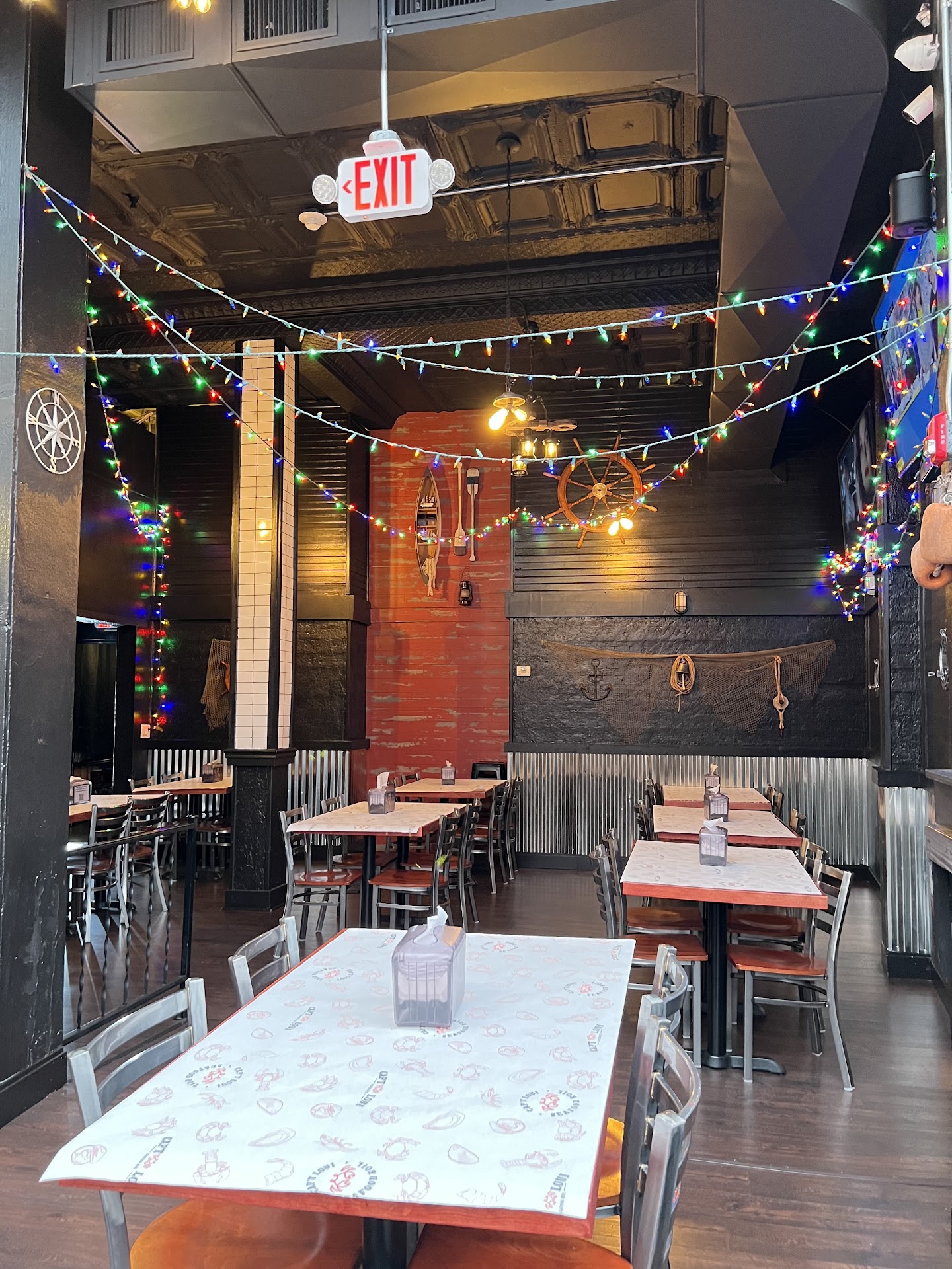 My chum and I stopped here for lunch yesterday around 1PM on a very rainy/chilly day. The place was pretty empty save one or two tables, and didn't fill up too much while we were there - the weather definitely kept a lot of potential customers away. The interior is VERY cool; understandably there's a crab shack/sea shanty vibe to this place, and I liked that the market prices for the seafood boil options were prominently displayed in multiple locations to allow for informed decisions in that regard.