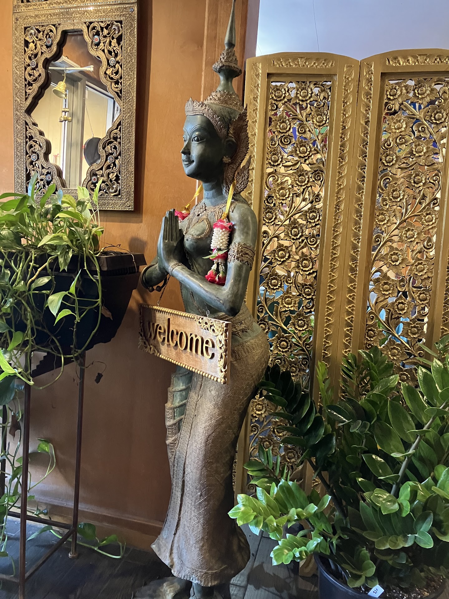 I havenāt had Thai food in some time so when I googled, it came up with this lovely place. Even when ordering takeout, the co-owner was pleasant and welcoming. He asked me my name then introduced me to his wife and business partner. I ordered the beef satay, tom kha soup, pad Thai with pork, pineapple curry with duck (a special request), sticky rice with mango and Thai iced tea. OMG, all of it was so delicious with generous portions. The soup was flavorful and the pad Thai was not overcooked, as it sometimes can be made goopy at other places. The curry was just enough spicy and the duck was so tender and crispy. The sticky rice with mango actually silenced me because I was just savoring the taste of the coconut and mango, which was perfectly ripe and sweet. Although I didnāt stay in their dining room, it looked beautiful and cozy so we canāt wait to return and stay to have dinner. Last (and what a surprise), the co-owner saw that I was struggling to hold my order (I had so much food) so he dispatched one of his staff to carry it for me to my car, which was two blocks away. I was sincerely touched by this kind gesture. I canāt...