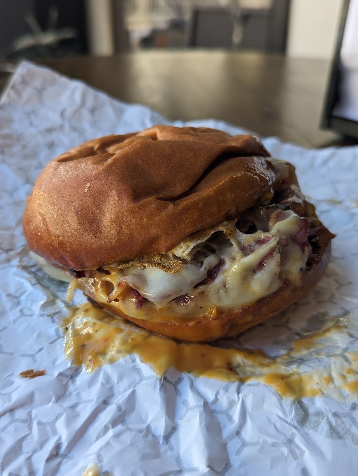 My absolute favorite was “What’s the dill?” With fresh crispy chicken cutlet and dill aioli and second was the Dutch daddy breakfast sandwich piled high with juicy hot Pastrami. It was a tight place and only had 1 small high top table inside and 2 window seats. Seems most orders are to go. There’s also seating outside (obviously weather permitting) it had a cool retro theme inside and he showcases art from local artists which is awesome. Plenty of chip and drink options. Super friendly fast service. I cant wait to go back and try...
