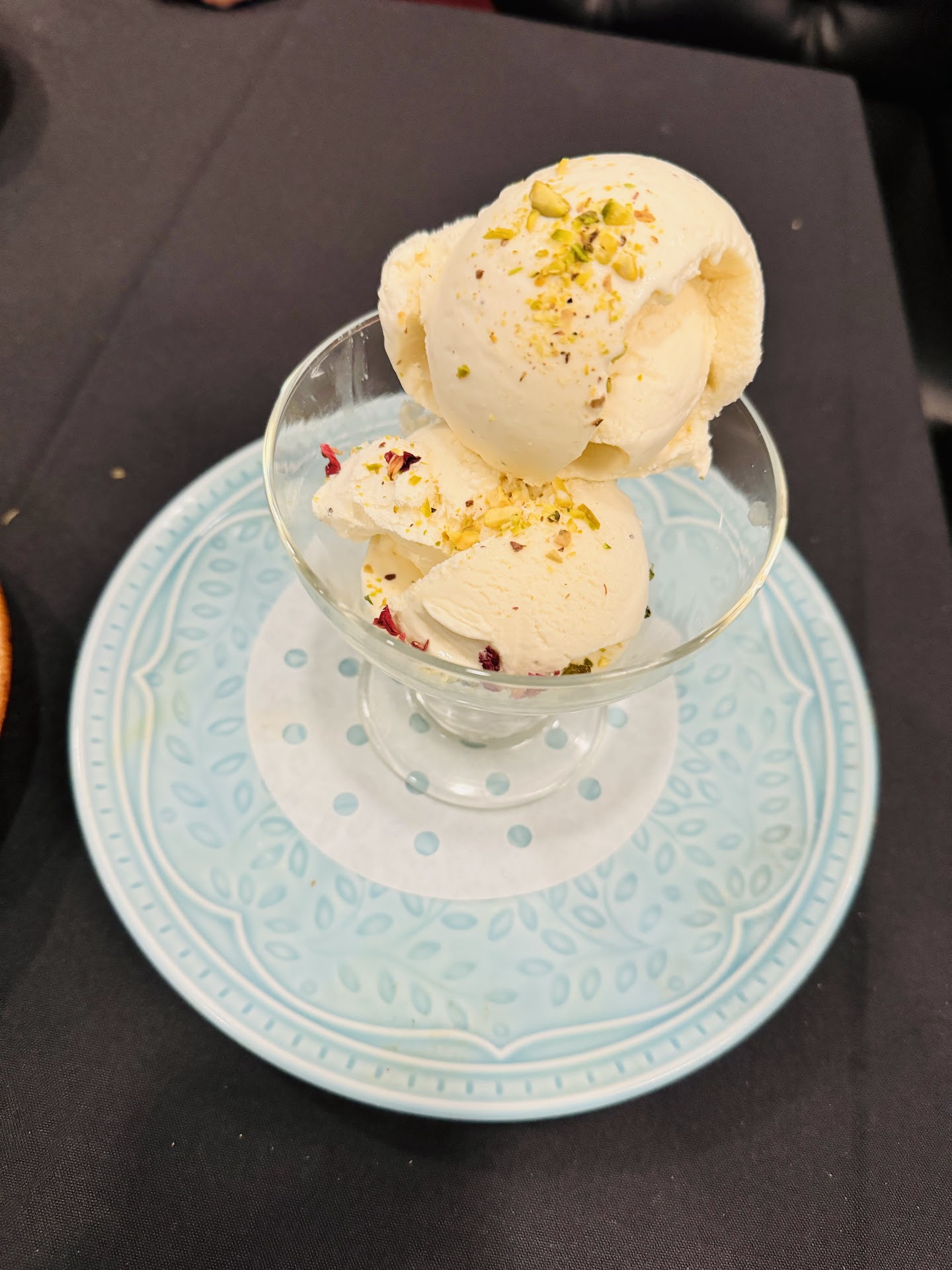 Methi Paneer Malai Toast & Dal Bukhara: The Methi Paneer Malai Toast, a double layer of mint cottage cheese triangles in a creamy fenugreek & cardamom gravy, was a vegetarian delight. Accompanied by Dal Bukhara, a harmonious combination of black lentils cooked over a slow fire, our taste buds were transported to culinary bliss.