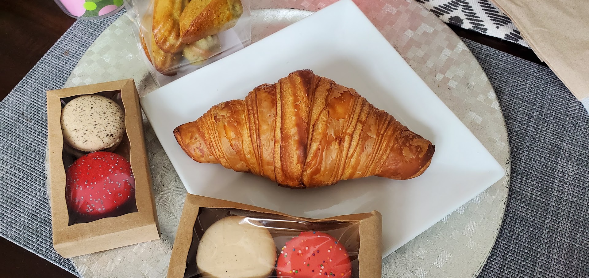 Read moreAbsolutely delicious!!! Apparently there are new owners (or just a new name) at this French Boulangerie (bakery) & cafe. I came here for some good French bread with aged yeast. I was told all of their breads have this. I got their Champagne Pain and their Olive bread. They were absolutely beautiful! Everything was actually, but these were so elegant and high-end. The Olive pain (bread) had a beautiful design on it. They have so many flavors of macaron.... I also got a chocolate filled croissant. It was lovely. The chocolate was a nice multi dimension flavor closer to a dark chocolate. I sat down for a sandwich and coffee as well. I am vegetarian so I had their veggie sandwich. I asked to have guyere cheese added. Holy amazing! I was sad about the veggie saute sandwich at first, because most places seem to cook the same veggies and serve it up. Those things are lackluster, but this, now, this sandwich was toasty and gooey from the amazing cheese. The veggies also had a lovely dimension and unique combination of flavors.... AND... oh my goodness... they served a small side of cut up romane lettuc with... ... their own home-made spicey dijon mustard tricked on it. Now, I know, that sounds incredibly strange—spicey dijion and romane, but another knock-my-socks-off homerun. Seriously, I am blown away. Oh, and, usually I find French sandwiches to be a little less than filling, but here I had to take my after meal croissant home. I was beyond...