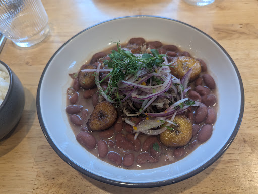 The tradeoff is you're not getting a lot of pork with this dish, which is a disappointment given the price point. As you can see from the attached photo, the red beans really dominate the dish and although the majority of pork is obscured because of the onion garnish, it was easy to obscure, believe me. The plantains are sparse as well, so roughly 70% of this entree is rice and beans, which are tasty but the best parts end up being supporting cast members. I didn't toddle out of the restaurant feeling disgusting, so that's a plus to be fair.