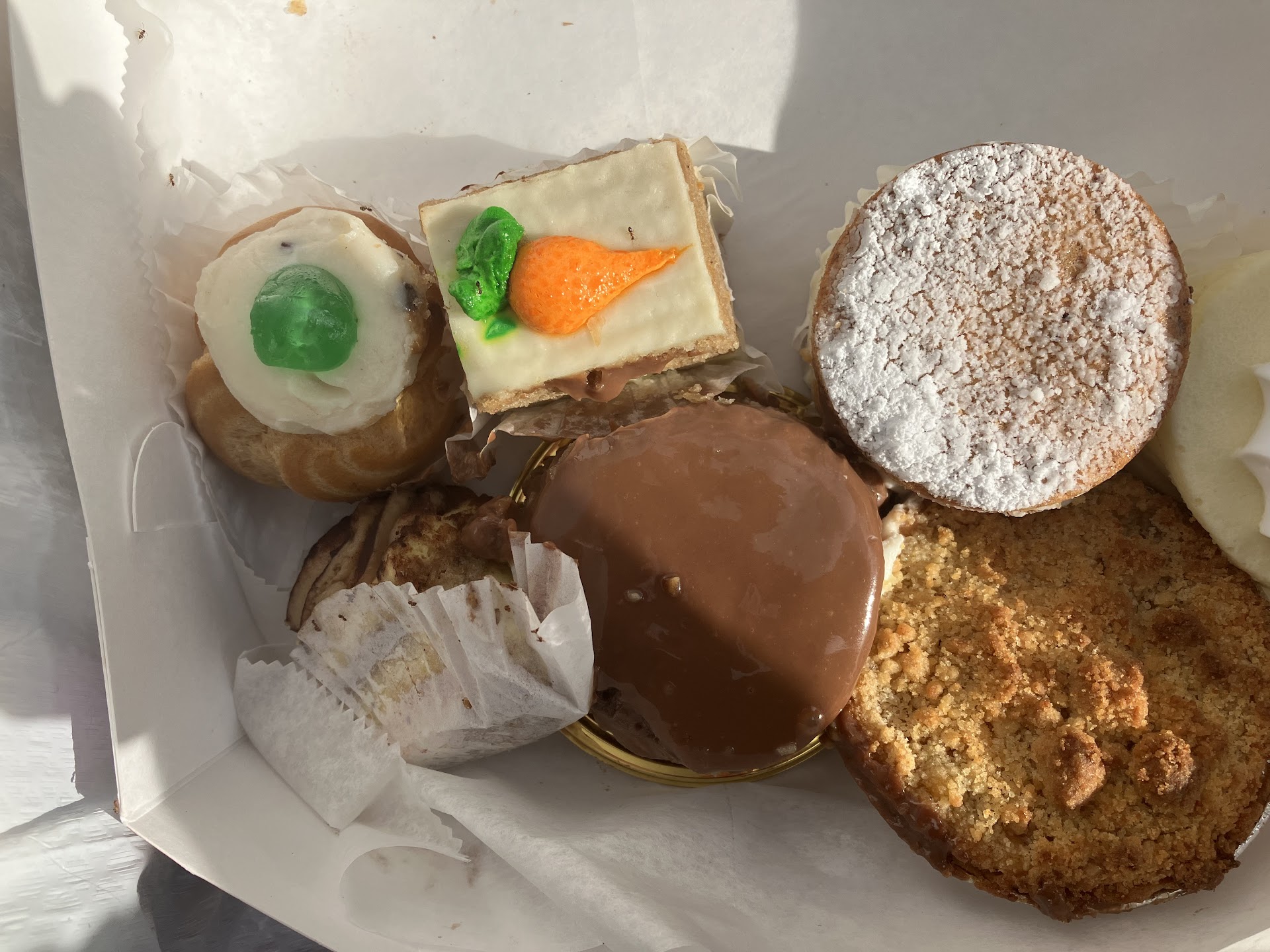 The box was given to the postmate without anything to actually protect it. There was no tape closing the box, no yarn, no plastic bag. Without the box being sealed, anyone could just open it and do whatever they pleased with the pastries inside. When my dad called the bakery to let them know this happened, the person answering the phone was not only very rude and refused to take any responsibility for not sealing the box, but ended up hanging up on my dad after continuously repeating to him that “we do not do deliveries”. My dad was not asking for money back, nor was he asking for any more pastries—he just wanted to let the bakery know of this issue, which they very clearly were not willing to hear.