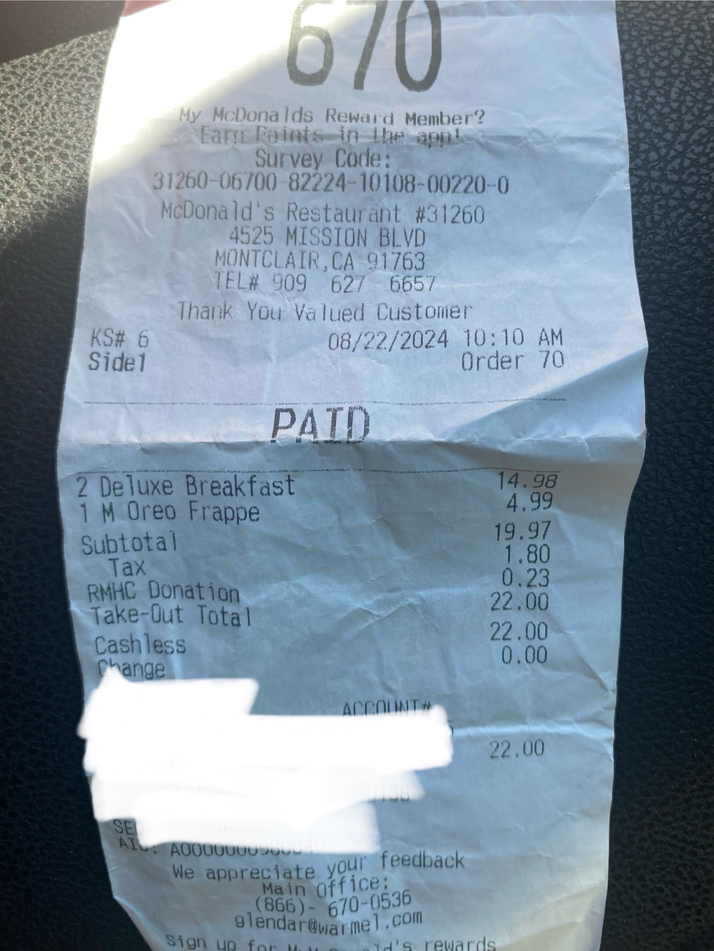 2024 update: Placed an order through mobile app. Arrived and checked in. After 10 minutes nothing. I tried calling and had no answer. At 15 minutes my husband went inside to check what was going on. While he went inside I received a call back from the manager saying they were sorry for taking so long and would be adding a pie to the order due to the inconvenience. Asked if I wanted anything else. I said no because weâre just trying to get our food and go home because my husband has work soon. My husband comes back out of the restaurant and says he couldnât get a hold of anyone because they were all ignoring him. Eventually our order comes out. I had ordered a 10 piece nugget meal and asked for ranch for my meal, my husbands meal and ketchup for our daughters meal. When we got our food we asked if there was ranch in our bags, the worker handed us two ranches and said yes. We checked our bag and there was a 4 piece nugget box and no sauces other than the two the lady handed us. What shouldâve been a quick 5 minute trip ended up being almost 30 minutes. Oh and the pickup spots were empty and the drive thru line was short. The inside of the restaurant wasnât...