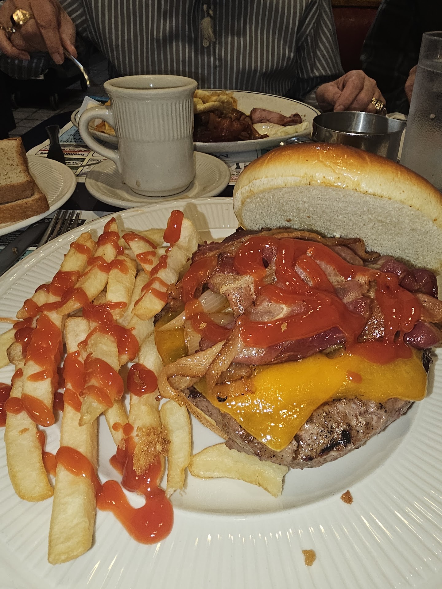 Read moreActually had a fun time with my parents at this Diner but only because there was alot to laugh about. We arrived and waited for 5 minutes before we got menus after sitting down. It's a sit anywhere you like kind of diner which was cool. After we got our menus, our waitress placed 3 glasses of cold ice water on the table, and asked what we would like to drink. We started off with 3 coffees which took about 10 minutes to arrive, no joke. The coffee here is actually terrible, it tasted like warm water. After we got our coffee we ordered three items, a super hero breakfast, an infinity burger I believe it was called, and a western omelette sandwich. Now my mother had asked for her sandwich on rye bread, toasted. The food took about 15 minutes to come out, and of course they put my mothers sandwich on white bread. This wasn't a big deal but when they brought the correct sandwich back the omelette was cold to the touch. I'm guessing they just switched the bread but for the amount of time it took to do that the omelete got cold and my mother was not pleased at all. Throughout the experience we were not offered refills and could only order drinks whenever the waitress came around, so no customary check ups while dining. The food was okay except for my mother's order which was totally botched. After we were done eating our waitress was occupied running the register and doing other tasks. My family and I waited and conversed for about 10 minutes before I decided it would probably be easier to just walk to the front and pay instead of getting a check at our table. Absolutely bad dining experience, would not recommend to friends or family. I score this a 3/10, two stars will most likely...
