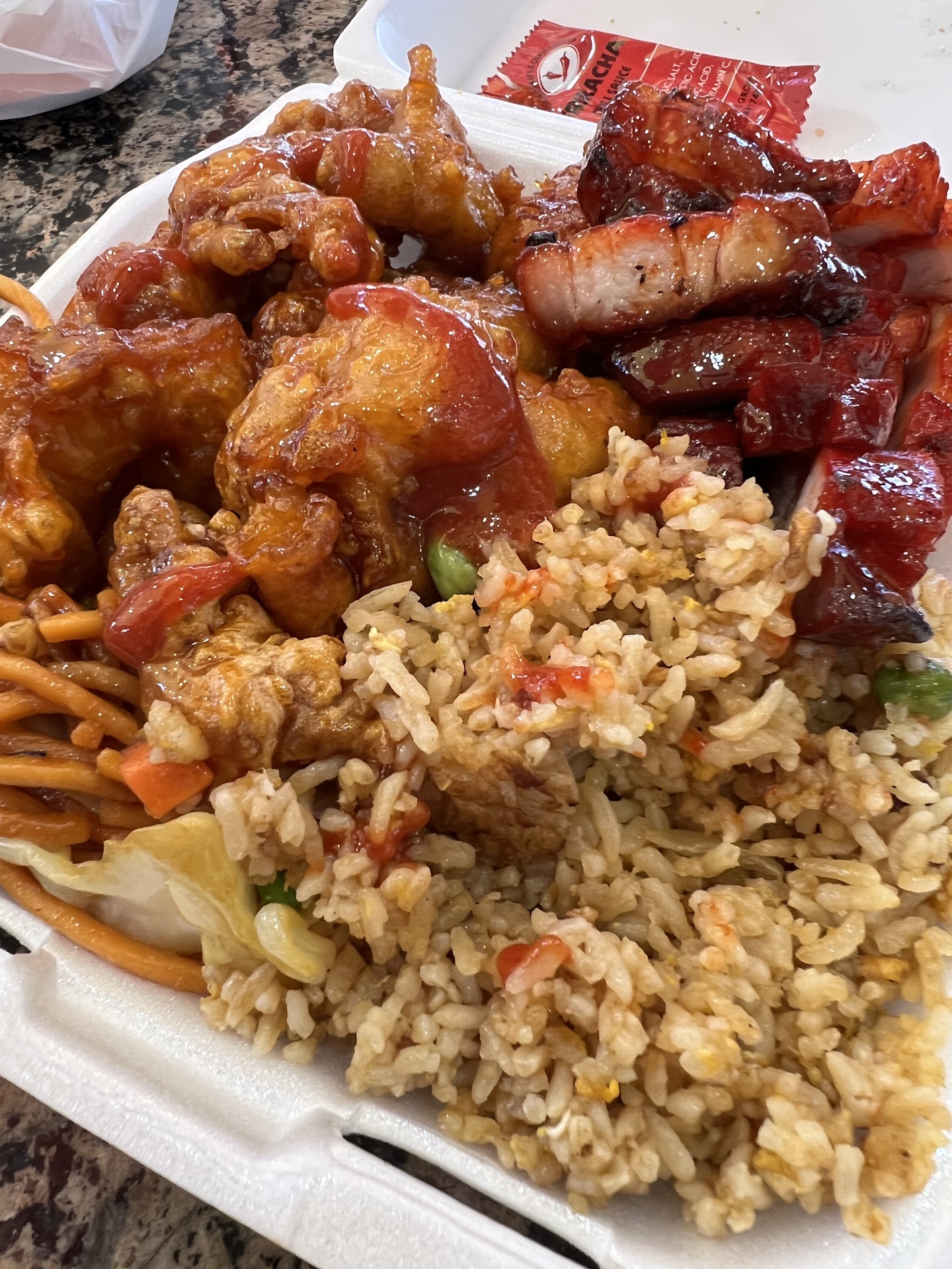 Let’s talk about the orange chicken shall we?! WHAT chicken?!?! It was mostly clumps of breaded dough smothered in orange syrup, there was no tanginess, just syrup, although it was crispy, that was a hard no for me. Would some actual chicken make it better??? I don’t know, I just think they’re cutting corners and think that people are too dumb to realize that there is hardly chicken in that “orange chicken”, lol. People are so into the sweetness we don’t even notice there is no actual chicken, but to each their own, I prefer some noticeable protein in my orange chicken, sorry I’m passionate, lol. 🤷🏻♀️