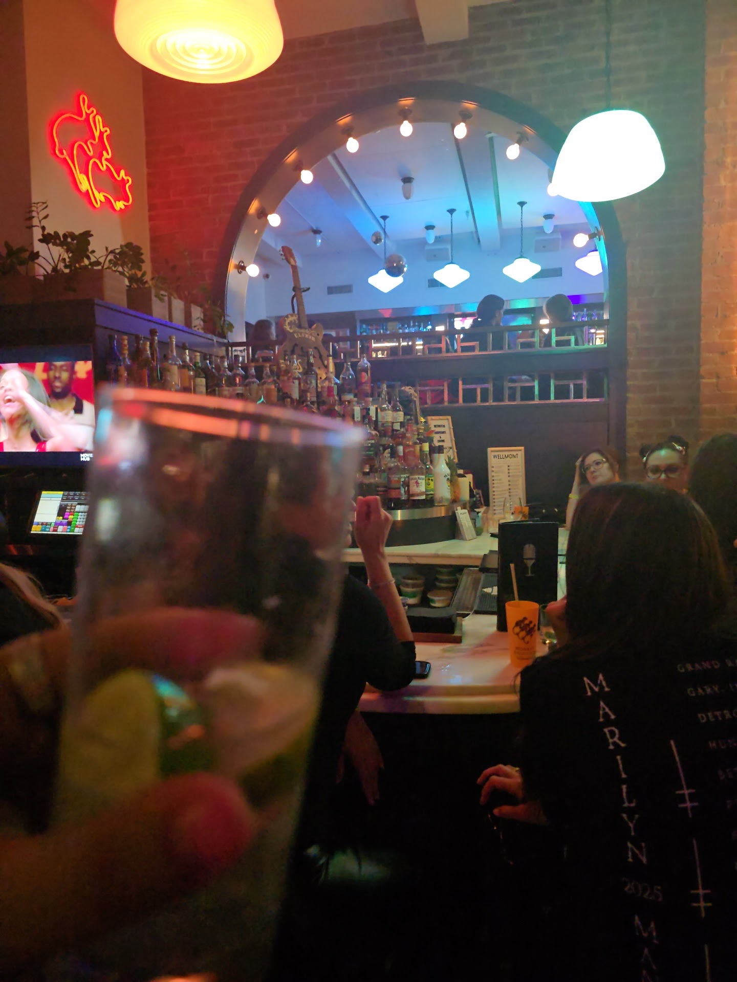 Read moreThe place is an ideal spot if you want to stop by and get a drink before the show at the theater. Have a bar on the lower section and upper section. The staff was great and responsive so my critique is not on them. The drinks shown in the picture are Desperate & Divine, and Moonage Daydream. Both were okay but really didn't stand out as anything great. Desperate and Divine had a huge cube in my first drink which is cool. Big blocks of see-through ice is always a nice touch for cocktails. Unfortunately the class was a little too thin and the icy block shattered it on the edge when I try to move it out of the way so I could drink. The bartender was quick to respond and make me another drink. It wasn't worth the $16 plus tip for each drink as it wasn't that impressive. Maybe if I had a different drink I could have had a different experience but it...
