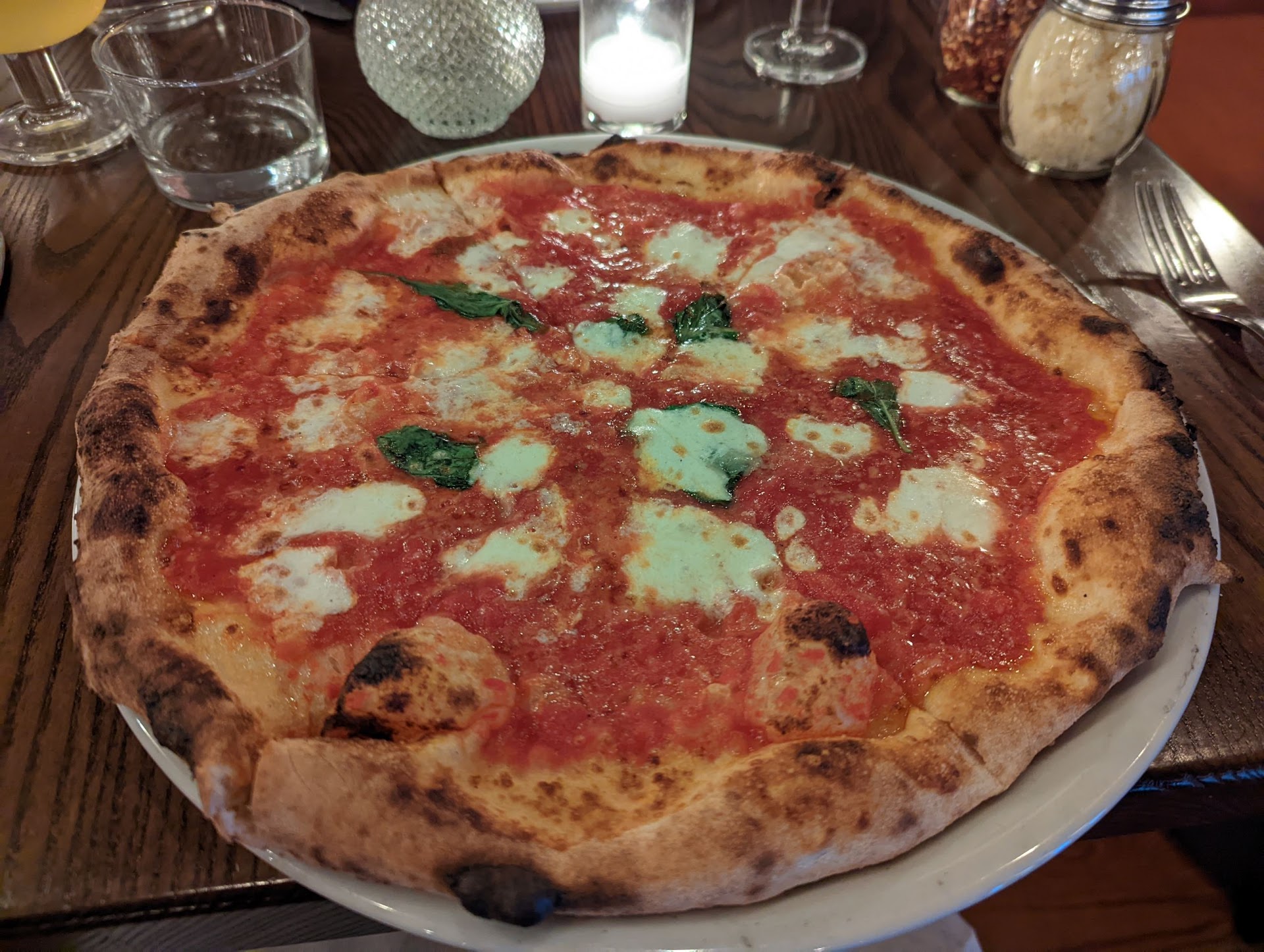 Some of the brunch options looked mighty tempting, but when in Rome, I think you have a moral obligation to go with the pizza. Is it the best I've had? No, but it's solidly above average and I'd have no problem ordering it again. As a Neapolitan style pizza, the cheese is by definition not as prominent of a star as it is with other types, but the mozzarella still stands out here - not surprising given the aforementioned app. The sauce is the perfect balance of sweet and tomato-ey and the crust is airy and lightly burned - every part of the pizza does its part.