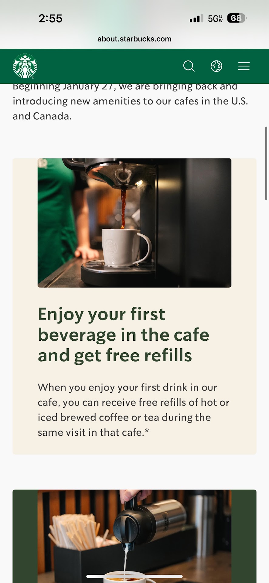 They donât know the refill policy. I ordered an espresso frappe with coconut milk they said they didnât have then they offered ice coffee frappe which was fine. I got in line to get a refill for an ice coffee or whatever qualifies me for a refill I said Iâm not picky Iâll take what ever qualifies me for a refill. The worker said I donât know let me ask then I had 3 employees telling me based on what I ordered I couldnât get any refill of anything they explained I would have had to order an iced coffee or a tea and my iced coffee frappe wouldnât count. So I had 3 employees deny me. Wasnât gonna make a big deal. Iâll school them here. Here is the policy. Starbucks offers free refills on brewed coffee (hot or iced) and tea (hot or iced) to customers who are enjoying their beverages in the cafe. The refills are available during the same visit and must be the same size as the original drink. Customers need to have their initial drink served in a "for-here" cup or a clean personal cup to be eligible for a refill, according to Starbucks. your initial purchase must be in a reusable cup or âfor-hereâ serveware.
