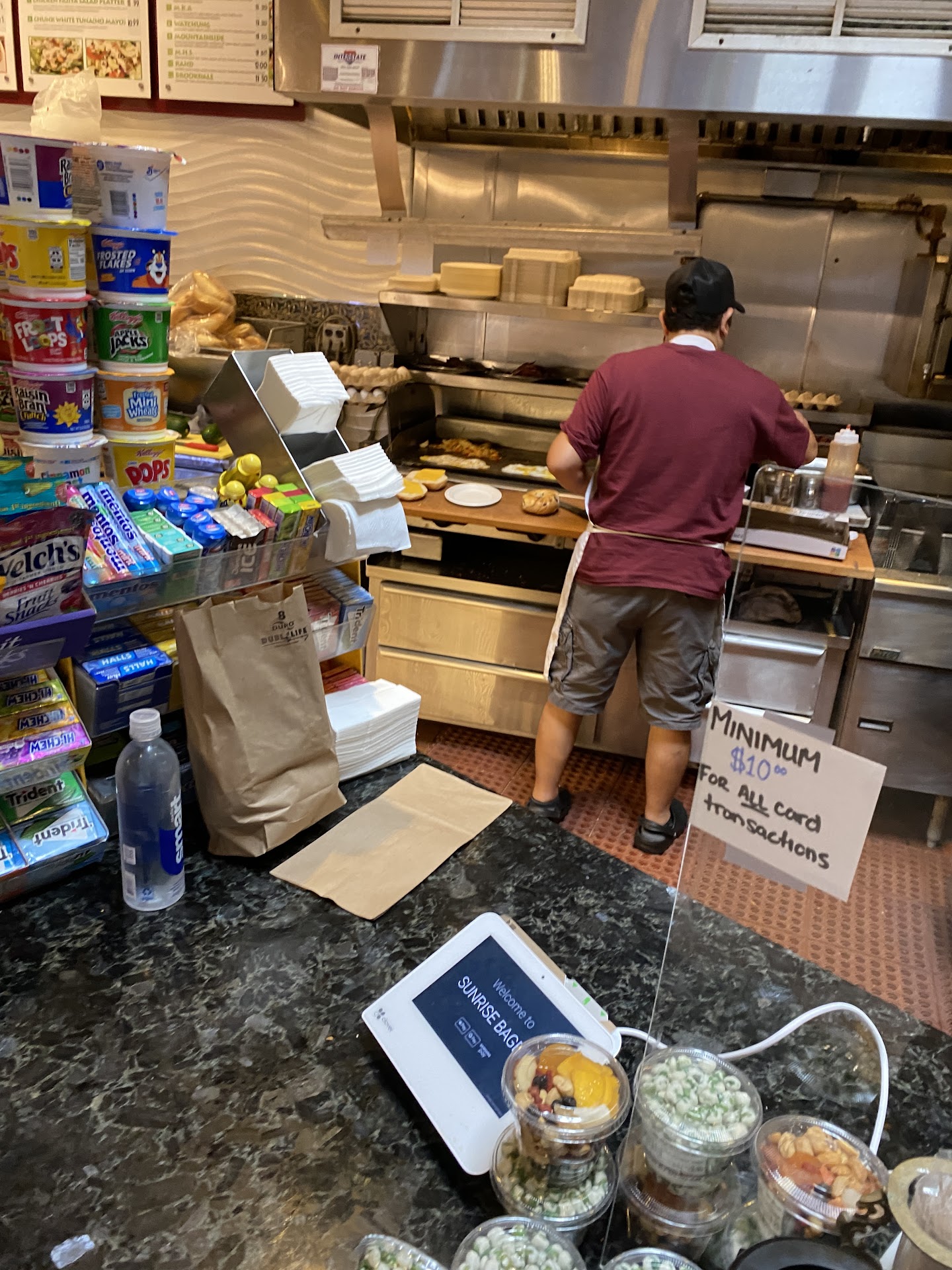 Anyway, this was my first time here today, ordering was already challenging. The order was repeated THREE times. Ouch! To add insult to injury, people were all over the place, standing too close to one another, a white lady took a juice out of the fridge, began drinking it, put it in her pocket, and almost didn't pay for it like a would be thief in the night. They laughed it off, which was odd. I did notice the dirty looks shot at us as we waited, and somehow, people who were coming in after us, were getting their orders BEFORE us. I thought, okay maybe it was because we had a large order with specific instructions... NOPE. Others had the same orders, bacon, egg and cheese. 20 minutes later, still no order, and when my wife asked about it, they shot her a dirty look. You would think someone who would shoot a paying customer a dirty look would have their "talents" in check right? WRONG! Drove 20 minutes home only to find out the orders were wrong and inedible. It's safe to say that during a pandemic with so many uncertainties and money hard to come by, our money most definitely won't be spent here. I strongly suggest anyone here reading this, please do yourself a huge favor and find another place to support. I hear hot bagels abroad is amazing! I'll be visiting...