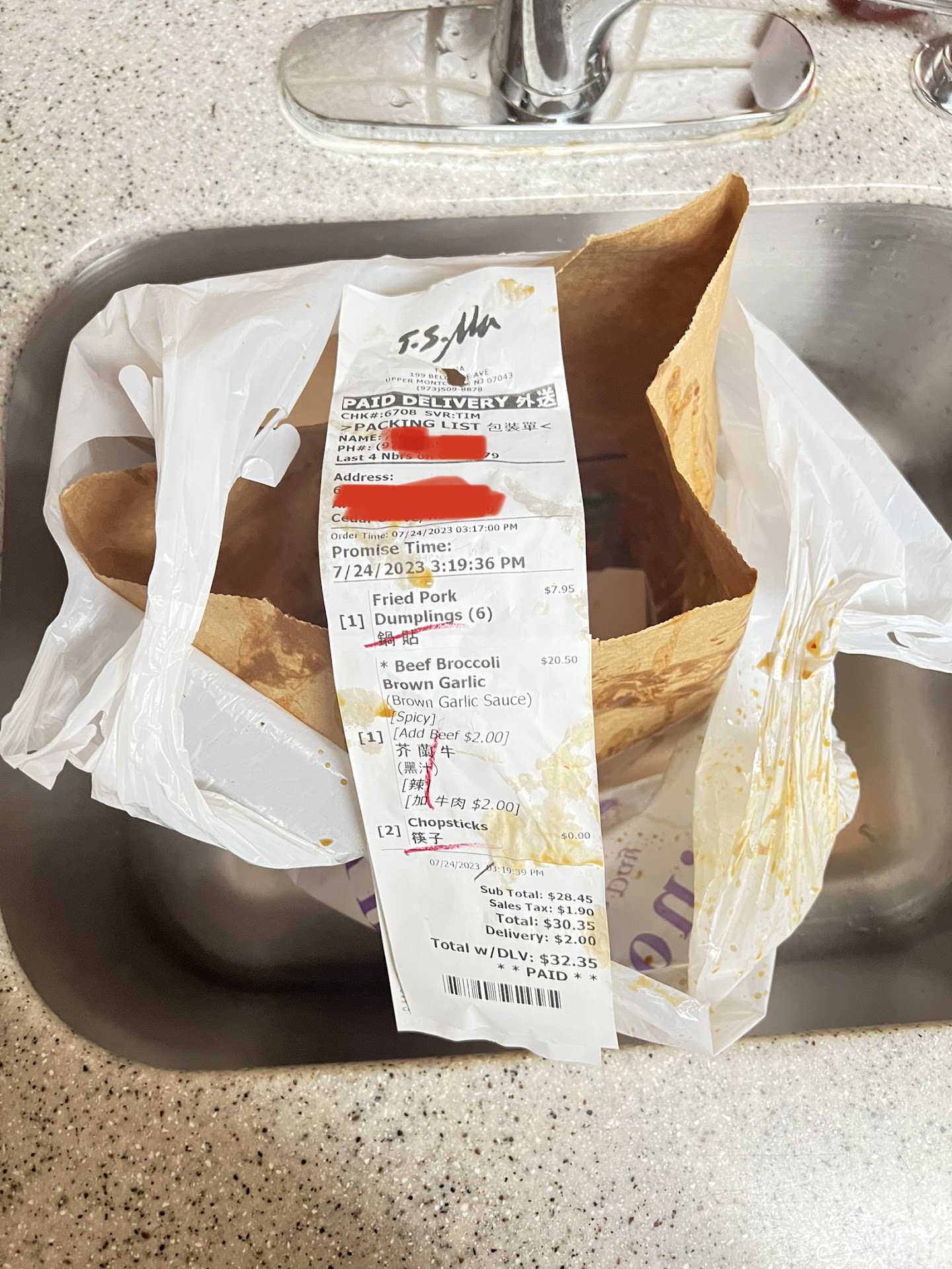 Finally I get my food delivered by a different guy and this guy isn’t that much better. He calls you when he’s here. When you answer, his call, he doesn’t even specify who he is, all he says is, “food is here” click. At this point I was just happy that my food arrived hot and the driver could actually follow directions. That happiness was very short lived though. Sure this new delivery driver is a mute and can bring me my food hot however, that doesn’t mean it’ll be an enjoyable meal. While walking to my door this guy loves to swing the delivery bag of food like he’s Santa clause giving gifts to children. The first time I paid $30+ for a mixed puddle of food, I was annoyed but grateful to even receive it. But this time enough was enough and I had to share my experience with ordering from this restaurant.