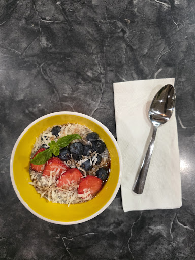 Read moreDuring my visit, I experience good customer service; employees are helpful and kind. The Berry Chia Parfait is really tasty. The fruits are crisp-cool and fresh. The coconut shavings are a subtle flavor, mixing well with the almond milk and chia to form a tasty type of pudding that is not so sweet. I like chewing on the mint periodically between bites, quite a heightening flavor with the meal. The establishment offers a variety of indoor seating as well as seating areas. The establishment is new and preparing to bring about more offerings (like more Vegan options). The establishment accepts different forms of...