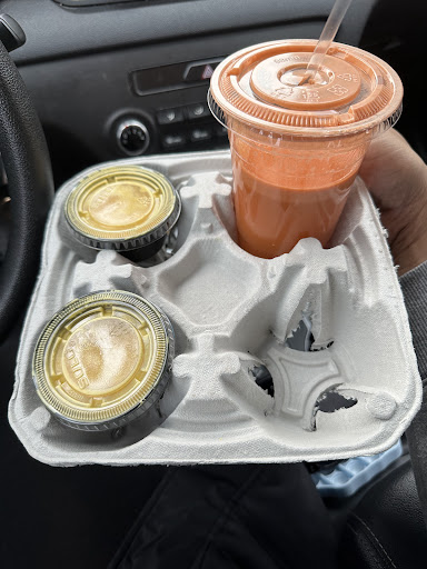 Read moreDuring my visit, I experience good customer service; an employee is very kind and helpful with navigating menu options. My order consists of avocado (which really fits the shake well, not slimy, easy to imbibe, even considering scenting avocado about a day or so after, not a nauseous addition), mint (a medium-strong addition which balances the other ingredients well, stomach and throat soothing, if one will), cranberry juice (a really good carrier for the mixture), spinach (super subtle flavor, though a healthy choice addition), Goji Berry (a healthy choice option, mainly because I don't normally seek the item on a grocery store run), and a scoop of Vegan protein (such a healthful addition after the gym). If not for a sign containing so many super-flavorful-healthy-looking options, I might not even know the juicerie exists. Coming across the sign after a wonderful workout, super ready to healthfully consume well, I decide to check out the establishment. The establishment seems to carry fresh ingredients. There is a seating area outside of the establishment (which is really like a chill kitchen area for staff, think drive-thru window, on foot, on the second floor of an office building). My order is really satisfying, really tasty, and definitely complements well all of that which I healthfully consume well upon arriving to my living quarters. The establishment accepts different...