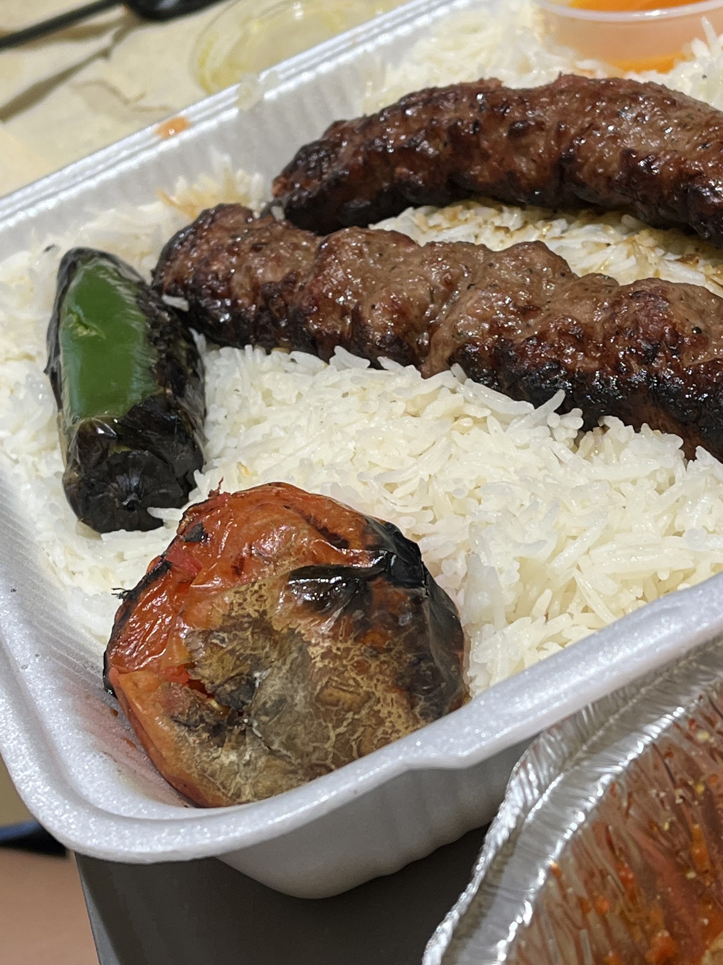 There was a 1 cm strand of hair that my daughter found in her rice platter. It was tinted red with blue ends, same as the cashier’s hair color. Before discovering the hair, we had a bigger reason where zero stars seems more fitting: We opened the rice platter and there was a grey color on the grilled tomato. Not charred black like the rest of it but grey. Looking closely, it was fuzzy mold. We showed the cashier and lady in charge and they asked if we wanted another tomato. We said no. They asked what we wanted. Well, usually in cases like that, we’d be offered something specific but nope, nothing. Well, a refund at least partial would have been appropriate but really, the food preparer’s reaction was not one of concern or even surprise. It was almost as if she knew the tomato was moldy when placed on the cooktop. Needless to say, the rest of the meal was not enjoyable and felt un-kosher, especially having found the strand of hair. We are never returning here. The food (lamb/chicken wrap) was not tasty (except maybe the koubideh). Worse, customer service is not a thing here.