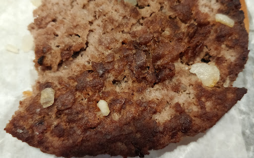 The tall, fat, nerdy store manager likely told the employees to mess up my food because the workers gave me the wrong burger. The manager looked really annoyed I had them make me my burger. If you look at the burger patty from the side nearly half of the patty was sliced off. Not only that but there were holes in the patty; I could literally SEE THROUGH my burger patty!!! The onions on the opposite side of the patty are visible. (These burger pics were taken in...