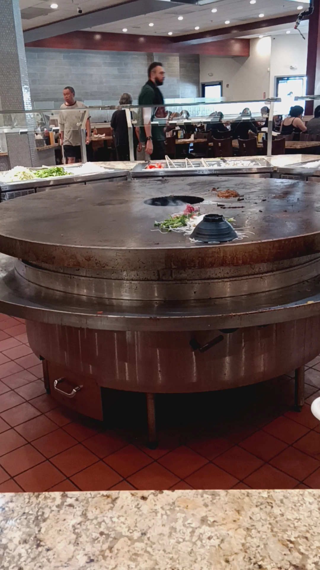 To begin with the line was a little long but it was because they just opened the restaurant so it was a good reason and while I was waiting in the line I could see the chefs freshly cooking and even flaming the food it had a vast variety of food and was pretty entertaining just looking at them cook another thing was the circle where the cooks were around it making the food as well as soon as I saw that I wanted to go there but one thing that really caught my eye was the sushi as soon as I saw it I had to get some and I got one Sushi of every single flavor and my favorite one that I would 100% recommend is the cheese cream one there was also this other one that looked like it had orange in it but I do not know exactly what that orange thing inside of the sushi was but it was really good and had really good texture and flavor every single piece of sushi was really good there was also this sauce that I'm pretty sure it's called spicy mayo and was also really good too I like the fact that you could just grab the sauce and put as much as you want on your plate after trying every single sushi they had I got a tiny bit of all the food they had as well and I have absolutely no complaints for any of it the one thing I didn't try was the salad bar because well salad isn't really something you can mess up it's just salad but after trying basically everything I had to go to the last thing which was the circle that is really hot where the chefs would stand around it and cook the food that you gave them it was really good all the ingredients were fresh and you even get to choose how much seasoning you want in your food all the cooks do is just grab the plate that you give them put it on there and cook it they don't season it you do so you get to choose exactly how much you want