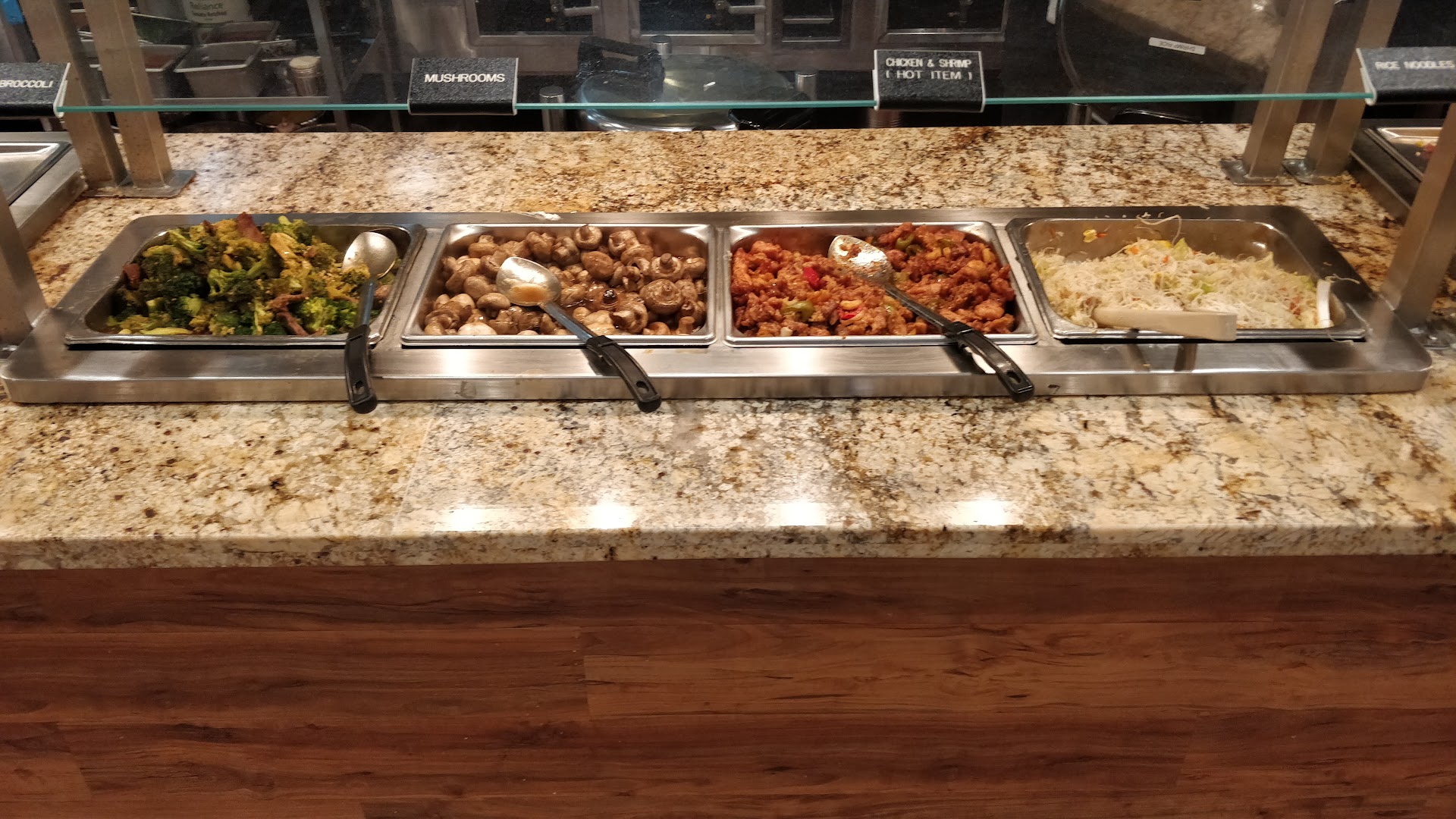Read morePeople kept talking about the cotton candy, but where was it?!?! ¯(ツ)/¯ Otherwise, dessert was not bad. Another reviewer mentioned it was frozen and wet? Not when I came for lunch. Not a bad selection of dessert items. Food choices weren't bad either. You have an assortment of sushi 🍣, but no sashimi. The rolls, I'm normally not into. It's just rice with a slight bit of something on top drowned in sauce, so it was standard. Most buffet sushi aren't that much better than grocery store quality, but this is better. At the sushi station, the boss-guy was trying to look to the lady in Spanish, but she told him straight up, so couldn't understand him. Not sure if he was being mean and stern, or concerningly stern. Eventually, she was able to figure out what he was saying. Anyways, their fried chicken was OK. Most other places are super dry after a while, but when I got here, it wasn't at that point. Just a bit dry, but not too much. The fried crunchiness of the crust is still there. The unique thing is they have a 'Mongolian' grill. My friend recommended getting two bowls, one for all the meat, and then he other for the noodles. I just added some Chilli oil, but this is the first time I've done this. Next time, I would've added just a bit more of the powdered seasonings, and a bit more soy sauce for flavoring. But still, not bad. Most other similar type of grills have 2 or 3 people moving things around the circular grill, but on the weekday lunch I was there, it was just one lady. So no ring-around-the-posy cooking. If there was not though, I'm sure I would've had more seasonings and flavors picking up from the grill, than if it just sat there. Overall, reasonable...