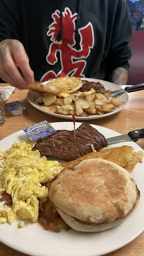 They were pretty busy and we had a table of 7 upstairs. Our waitress took long bringing beverages and we waited over an hour and a half for our breakfast. When our food was brought it was in intervals so we didn't get to enjoy our meal together before leaving town and 3 of 7 orders were incorrect. The waitress offered to take one of the mistakes off the bill, and at that point the person didn't even want the rest of the meal because we had been there over TWO hours. We had sent the kids to the kid zone twice already and more than half of the games didn't work/weren't plugged in.