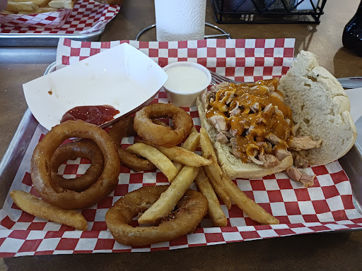 My husband ordered the pulled pork sandwich (without slaw) and fries. I ordered for our son, who is a toddler, and I. I ordered the pulled pork sandy(without slaw) and fries, baked beans, and macaroni and cheese. My husband and I also ordered a piece of cornbread. The food was good, but your average barbecue restaurant good, not what we expected for the...