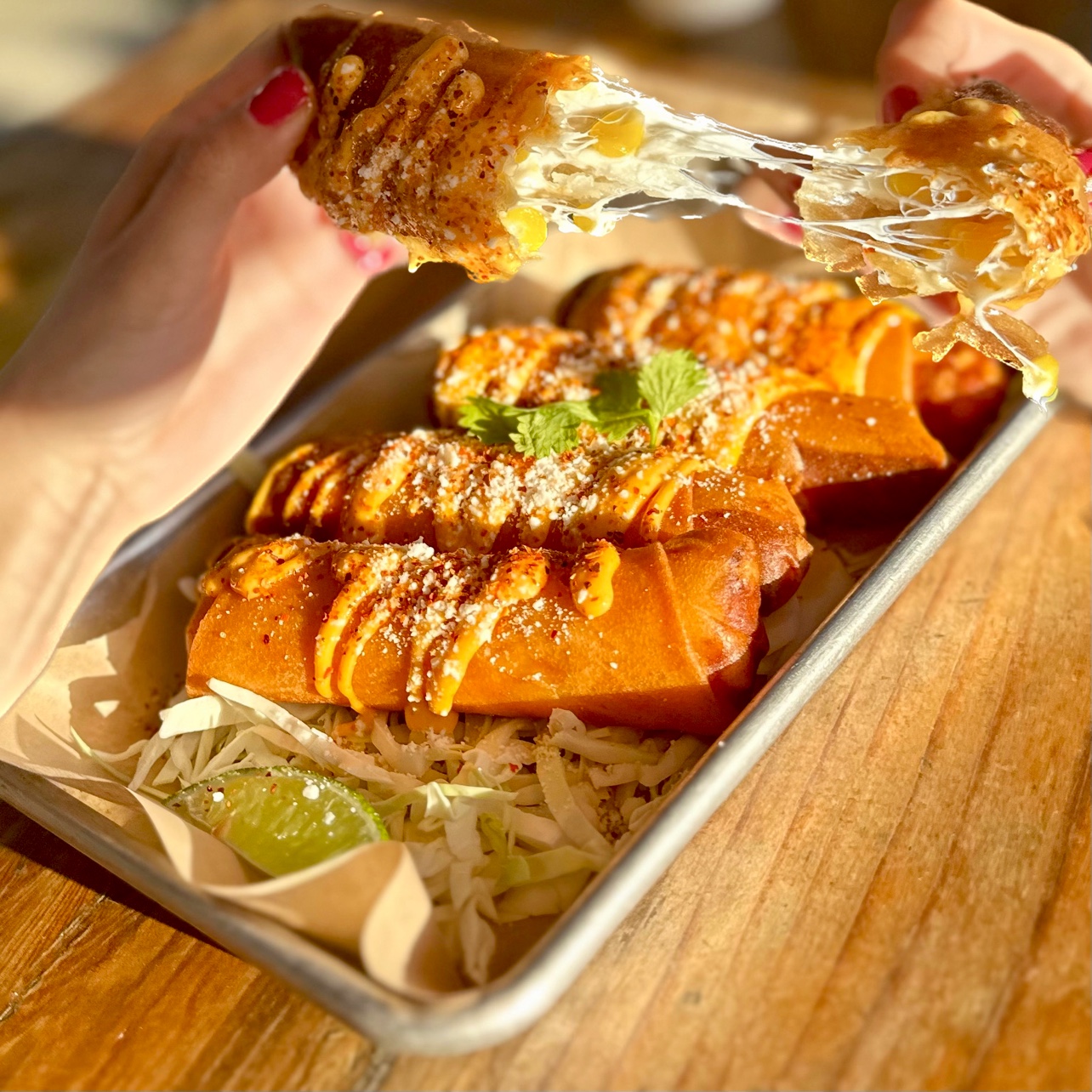 Our appetizers, the Elote Egg Rolls and Tray of Fries, were the perfect way to kick off our meal. The egg rolls boasted a delightful combination of crunchy, sweet, cheesy corn and were perfectly complemented by the spicy mayo drizzle and cojita cheese. Meanwhile, the Tray of Fries offered a satisfying, savory start to our dining experience.